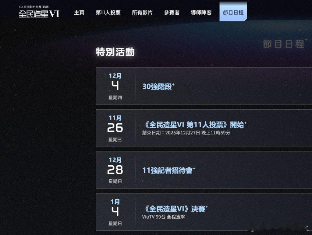 ViuTV的皇牌選秀節目《全民造星VI》總決賽將於1月4日舉行,有指今屆將移師澳門新濠影滙進行現場直播,並破天荒與TVB的《萬千星輝頒獎典禮2025》同日(1月4日)正面交鋒,令不少觀眾期待。《萬千星輝頒獎典禮2025》方面今年繼續在澳門上葡京綜合渡假村舉行,有多位實力派演員獲提名,佘詩曼、宣萱、林保怡等好戲之人會否出席成為焦點,頒獎嘉賓陣容也受關注。而ViuTV方面,亦有指他們請來天后及韓團成員坐鎮《全民造星VI》總決賽。港韓女神加盟《全民造星VI》總決賽?《全民造星》系列每屆決賽的評判陣容都星光熠熠,從首屆的周慧敏到第四屆的李嘉欣,份量十足。有傳媒報導指,ViuTV今年已成功力邀多年未在選秀節目露面的梁詠琪(Gigi)擔任評判。更具吸引力的是,傳聞將有另一位韓國一代女團成員加盟,組成港韓女神級評判團,必將掀起新一輪話題。在昨晚(4日)播出的《全民造星VI》最新一集中,賽制迎來重大變革。由於B組在第三回合中落敗需淘汰4人(54號Austin、25號Chester、Dixon及黃尚),而被淘汰的Chester和黃尚均為獲勝隊伍或表現優異的成員,引發了參賽者的不滿。黃尚坦言感到憤怒,而Chester更無奈表示:「既然贏了也要我們走,那輸贏已意義不大。」隨後,大會為平衡A、B兩組實力,決定取消導師制,將30強參賽者合併並重新分成6組,每組5人,進行自選及指定項目對決。新賽制下,落敗小組將有兩位成員被淘汰,為戰況增添了更多變數。本回合評判團包括卓韻芝、趙善恆Kwan、20號Winson、17號阿O、18號Kai Cheung、63號Teller)對陣第2組(32號畢佬、59號TUZERO、73號Yip、35號Michael、1號Jay Lam)。第5組的組建過程充滿戲劇性。隊長Teller因被蜘蛛咬傷身體不適,一度缺席驗收,導致團隊表演被評為「似撞邪」、「完全理解唔到」,陷入低谷。然而,他們並未氣餒,憑藉Harry Kwan在兩天內創作的全新原創歌曲《RISING》,在正式表演時脫胎換骨,演出令全場拍爛手掌。評判Gareth.T更對只得F級的Harry Kwan大加讚賞:「首歌係你整㗎嘛!我覺得幾好,唔錯嘅!」第2組則選唱了YT(周殷廷)的歌曲《三生有幸》。導師Gin Lee一直記得組員畢佬是YT的忠實粉絲,特意安排YT錄製影片為他們打氣。畢佬看到偶像現身支持,感動得眼泛淚光,並深深感謝Gin Lee的用心。早前有傳聞指,經理人花姐已欽點7位成員組成新男團,為MIRROR可能不會全員續約鋪路,有指名單包括Dave、Bosco Kwan、Ian hannz、Gordon、三金、牛牛和Marcus。然而,大熱門之一的21號牛牛,早前在比賽中因猜「包剪揼」落敗而被淘汰,失去了晉身15強到韓國集訓的機會,讓不少觀眾大感惋惜。儘管他據傳已在內定名單中,但這次淘汰無疑為成團之路增添了變數。