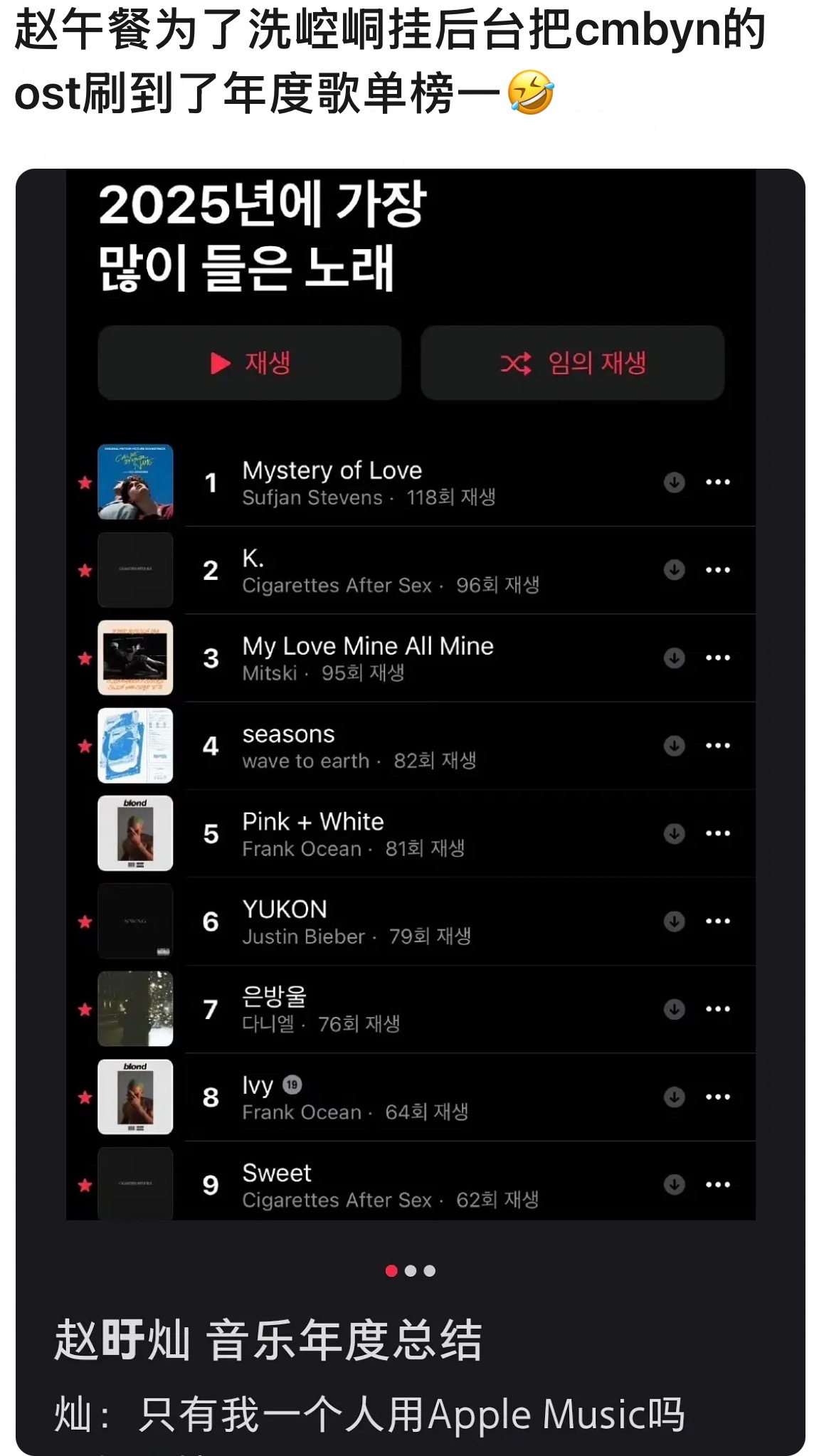 不再崆峒用爱反转世界赵旴灿 AM 年榜第一位居然是《mystery of love》