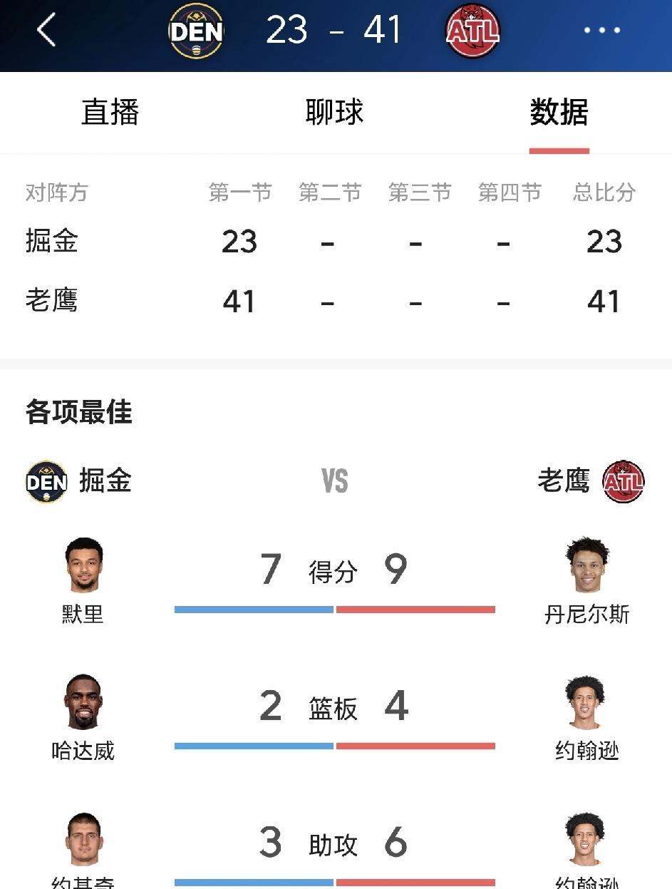 嚯,这比赛开局。 看得人脑瓜子嗡嗡的。 卫冕冠军掘金,让老鹰第一节给捅成了筛子。 三分12中8,两分9中8。这哪是投篮啊,这是端着机枪,枪枪爆头。 约老师站那儿,估计都闻到糊味儿了。 有人说,这是手感好,是偶然。 扯淡。 这世上哪来那么多偶然? 老鹰那帮年轻人,眼睛里烧着火呢。 那是饿狼看见了肉,是光脚的憋着劲儿,要绊倒穿鞋的巨人。 他们没什么可输的。 输给卫冕冠军? 不丢人。 可万一赢了呢? 那故事,够吹一辈子。 掘金呢? 身上挂满了勋章,心里装满了算计。 想着季后赛,想着卫冕,想着怎么赢得“体面”。 一身的包袱,压得脚步都沉。 这就是江湖。 下面的想上去,豁出命去撕咬。 上面的想稳住,反而束手束脚。 老鹰那股子“我他妈就是要干翻你”的混不吝,才是竞技体育最原始、也最吓人的东西。 技术会波动,战术会被研究。 唯独那颗想逆天改命的心,防不住。 看吧,掘金后头能追。 他们有这个底子。 但这场比赛的开局,已经给所有“强者”提了个醒:这江湖,从来没有稳坐的江山。 你松懈一分,底下就有十分的血勇,等着把你拉下马。 看的不是球,是人心,是处境,是欲望。 球场如人生,莫不如此。