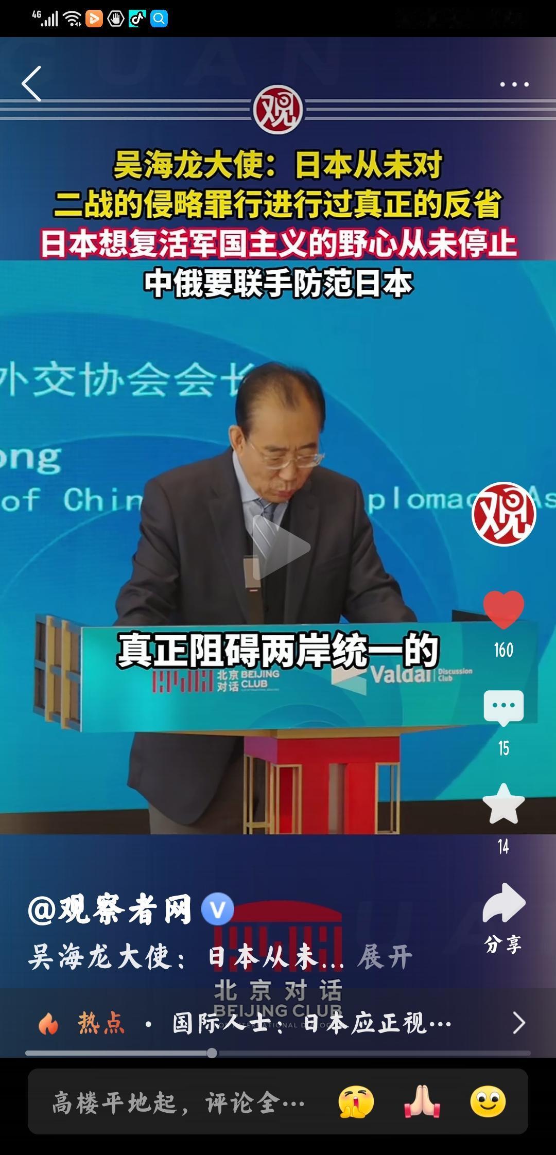 个人理解:中国真正统一就要先一步解决新日本法西斯问题 个人观点:个人认为老百姓也要参与到舆论战之中,发挥自己是中国人的一份子之作用。 中国统一必先解决日本军国主义,那么便是匹夫有责。 微不足道的发声也是发言。反制日本,人人有责。