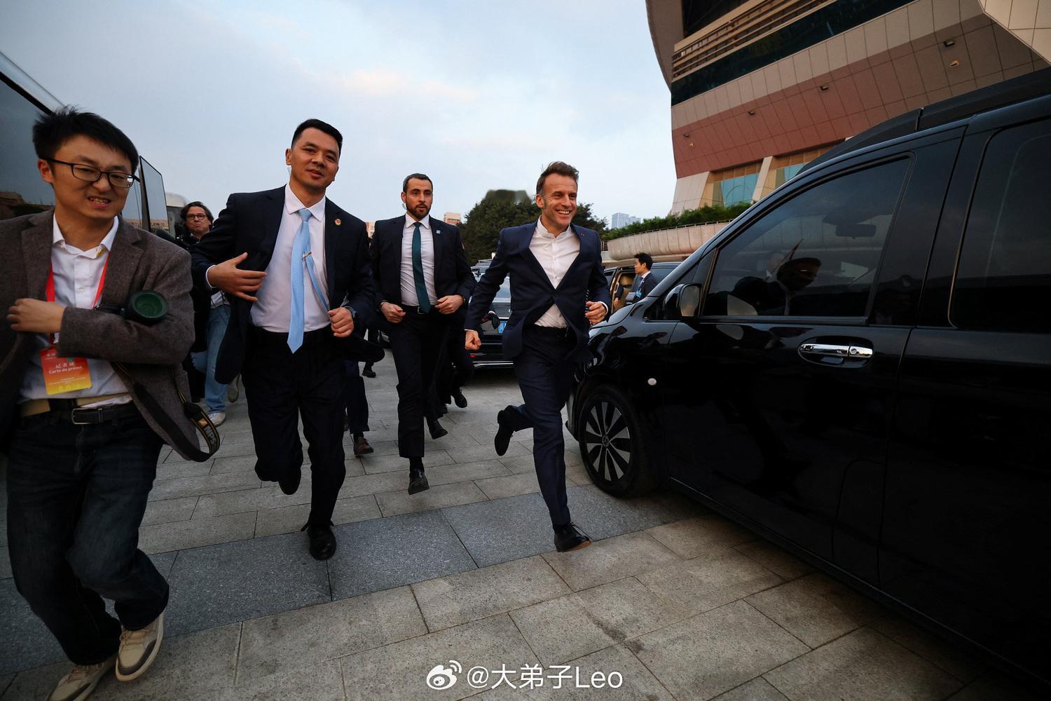 马克龙早上在成都晨跑赏湖的时候,保镖不小心掉湖里了法国总统在成都晨跑马克龙总统抵