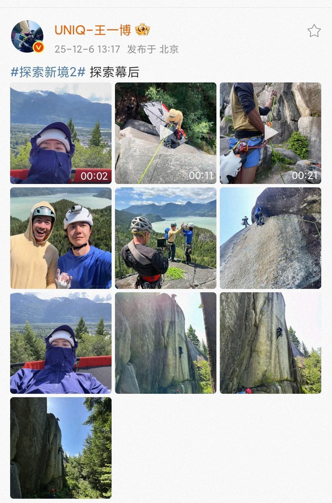 王一博分享《探索新境2》探索幕后,“豪发”三段视频和照片,肉眼可见的兴奋、开心、松弛自在。 和朋友的搞怪自拍,工作伙伴的携手合作,吊帐上的自己……那种真实、自然、自由热烈与蓬勃的生命力,通过镜头的记录分享给大家。隔着屏幕都感觉到他对于户外运动的热爱与享受了! 王一博 王一博探索新境2