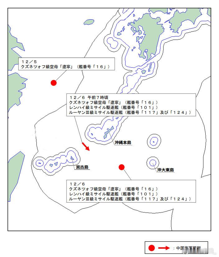辽宁舰今天再次出岛链前往西太平洋演练。日本统幕监称辽宁舰昨天在钓鱼岛黄尾屿以北420公里海域航行,今天经宫古海峡进入太平洋。编队包括101、117和124号驱逐舰。随后确认这4艘舰艇航行至冲大东岛以西约270公里的海域,并进行了舰载战斗机及舰载直升机的起降训练。此外,103编队昨天经宫古海峡返回东海。该编队11月11号经大隅海峡驶入太平洋。