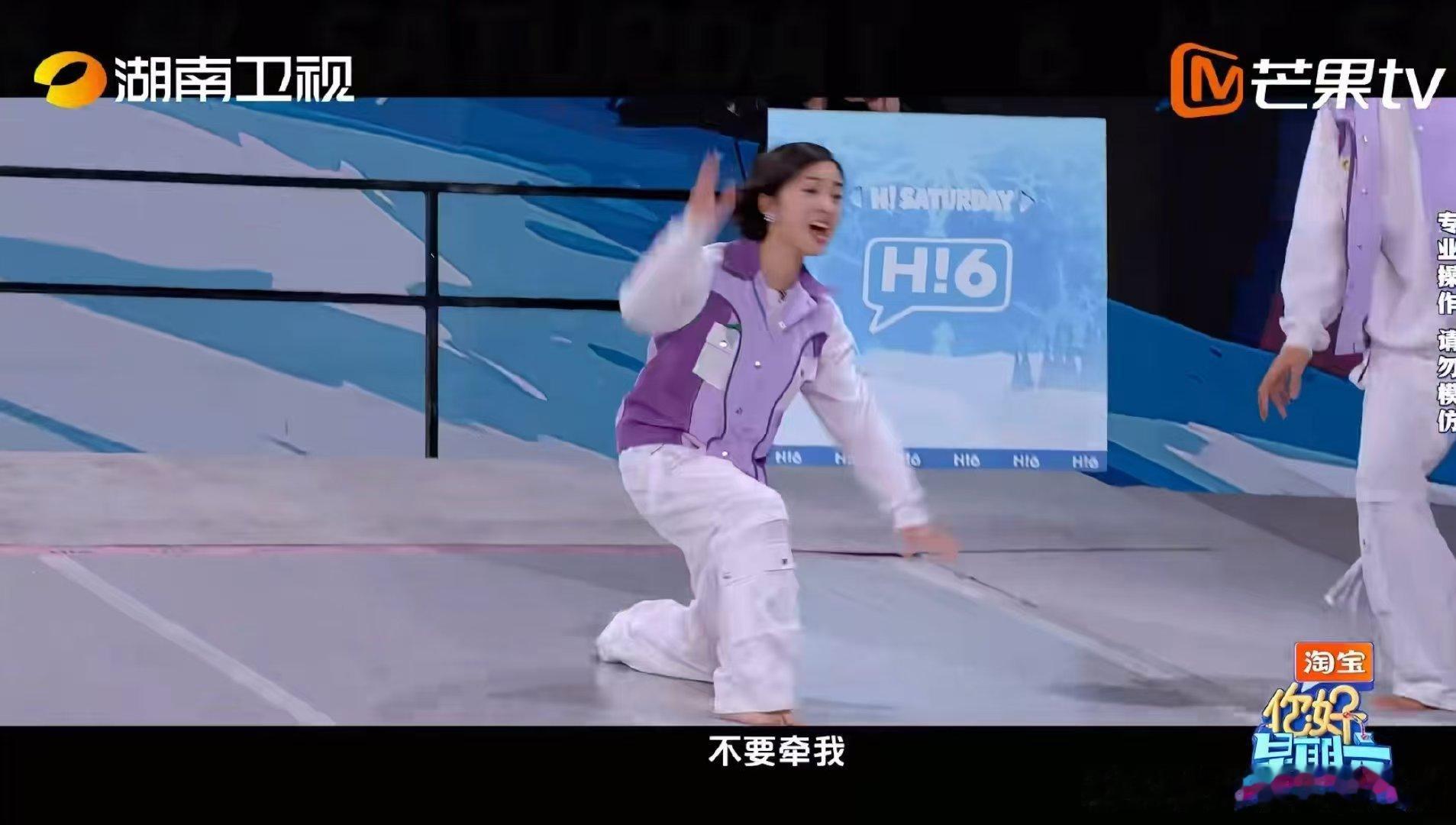 杨迪跳出了短道速滑的姿势你好星期六 滑雪环节惊喜不断!杨迪从坡顶下滑,双手张开稳