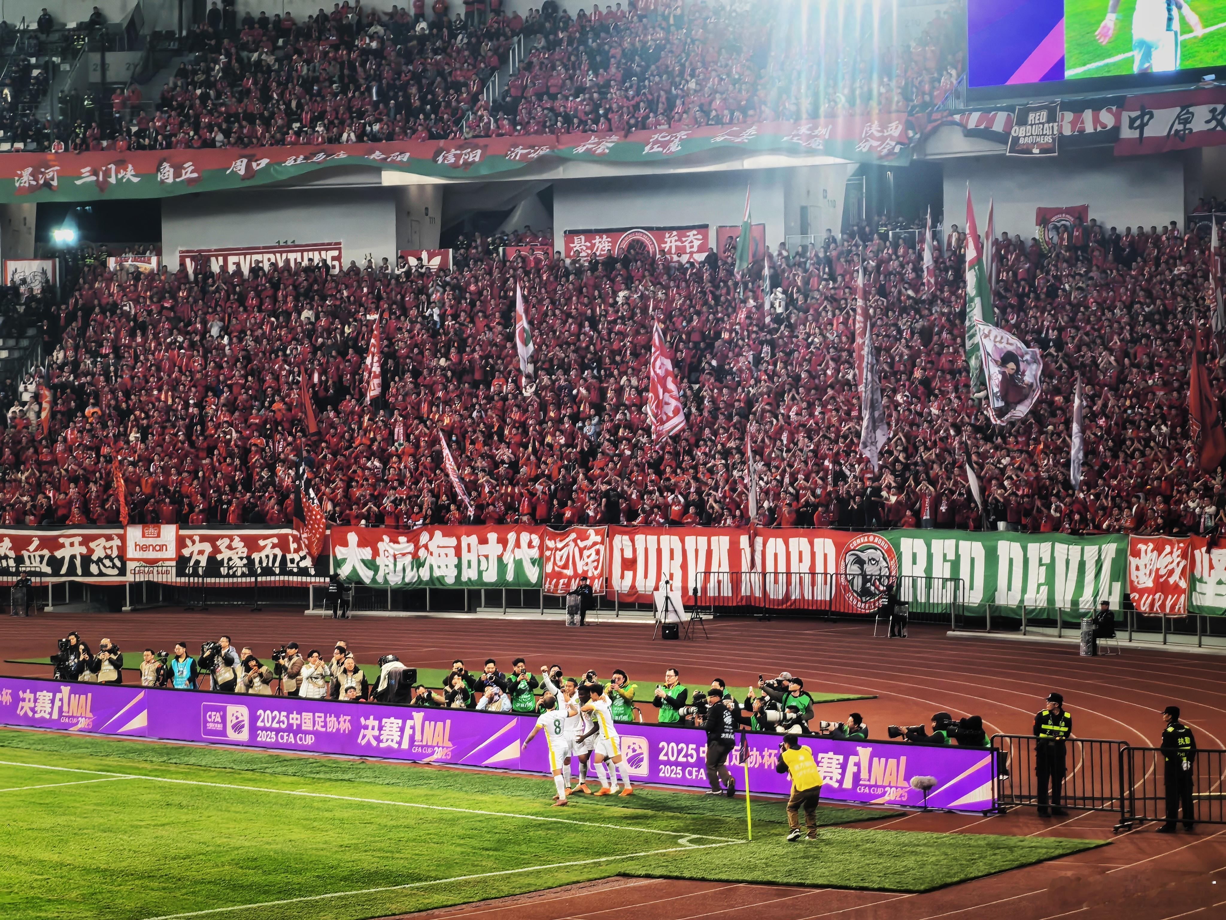 足协杯决赛 在中间位置看,双方球迷大约三七开,河南球迷声势明显更大,加上多位领导