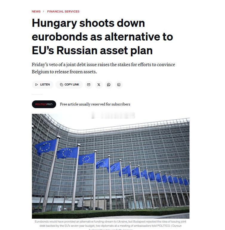 匈牙利否决了欧盟提出的为乌克兰提供资金的欧元债券计划,这使得在动用被冻结的俄罗斯资产的努力失败后,一个可能的备选方案被否决。这一否决是在一次大使会议上宣布的,由于与持有俄罗斯大部分冻结储备的比利时的谈判仍处于僵局,匈牙利否决了该计划的关键替代方案。