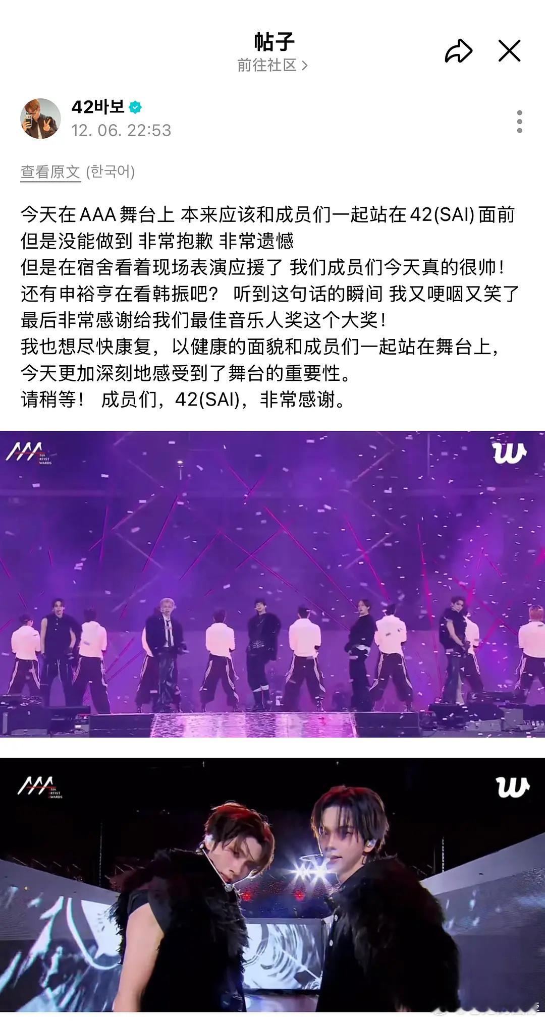 tws韩振因为身体原因不出席AAA颁奖礼