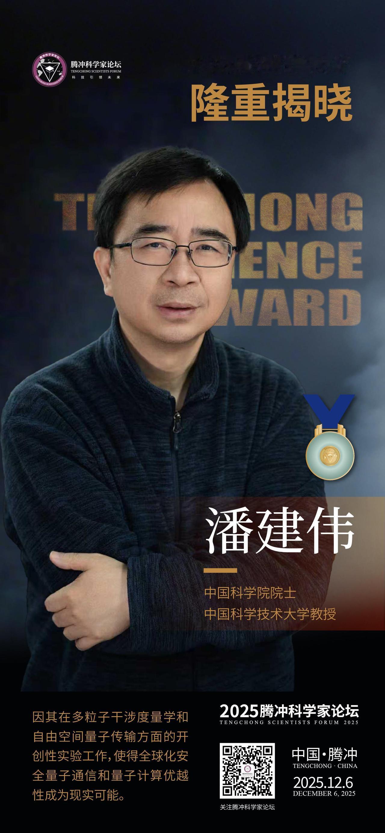 2025腾冲科学大奖揭晓,中国科学家潘建伟凭借量子领域的突破性贡献,一举斩获大奖,他究竟有何过人之处? 近日,2025腾冲科学家论坛在云南腾冲盛大开幕,备受瞩目的腾冲科学大奖也终于揭晓,获奖者正是中国科学院院士、中国科学技术大学教授潘建伟。潘建伟团队在量子通信和量子计算领域取得了显著进展,他们不仅成功关闭了不完美的光源和探测器带来的安全性漏洞,更实现了全球化安全量子通信和量子计算优越性。值得一提的是,潘建伟及其团队还成功构建了国际首个城域量子纠缠网络,并研制了“墨子号”量子科学实验卫星,实现了千公里级星地量子通信。此外,他们还研制了“九章”系列光量子计算原型机和“祖冲之号”超导量子计算原型机,让我国在两种物理体系中均达到了量子计算优越性里程碑。这一系列成果,无疑彰显了我国在量子科技领域的强大实力。 腾冲科学大奖的设立,不仅是对科学家们的肯定,更是对科技创新的鼓励和支持。潘建伟的获奖,无疑为我们树立了一个榜样。你对量子科技有何看法?快来评论区留言分享吧!潘建伟