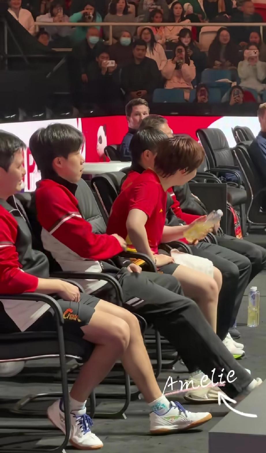 小曼姐坐在沙头中间又又又擦汗了! 成都混双,场边蒯曼坐沙头中间,小石头坐大头旁边。现场呐喊声阵阵,大丫头蒯曼一边擦汗一边看看右边大头,又看看左边莎莎,发现只有自己满头汗。不经意间又转头和小石头对视了下,俩人都笑了。 很好奇,为啥大头和莎莎都那么正襟危坐,忍住不笑的?