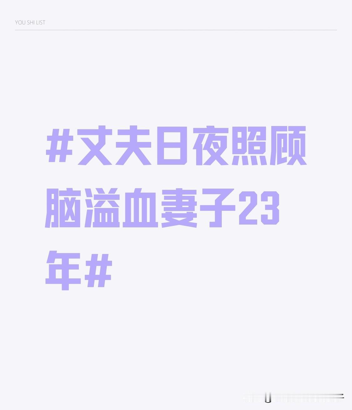 丈夫日夜照顾脑溢血妻子23年 12月5日河南郑州的这则新闻太让人动容了。妻子脑溢血送医时已无力回天,可丈夫偏不放弃,日夜贴身照顾,一守就是23年。每天给妻子按摩、喂饭、换洗衣物,一晚最少起夜四五次,连凳子都坐烂了,好在妻子身体很稳定。 还有长沙的吴自成,鼓励患癌昏迷4年的妻子学走路。曾经他就挑起照顾妻儿的担子,妻子生病后更是不离不弃。这世间有这样长情的守护,让我们看到了爱的力量和婚姻的意义。在困难面前,他们用行动诠释了什么叫相濡以沫。