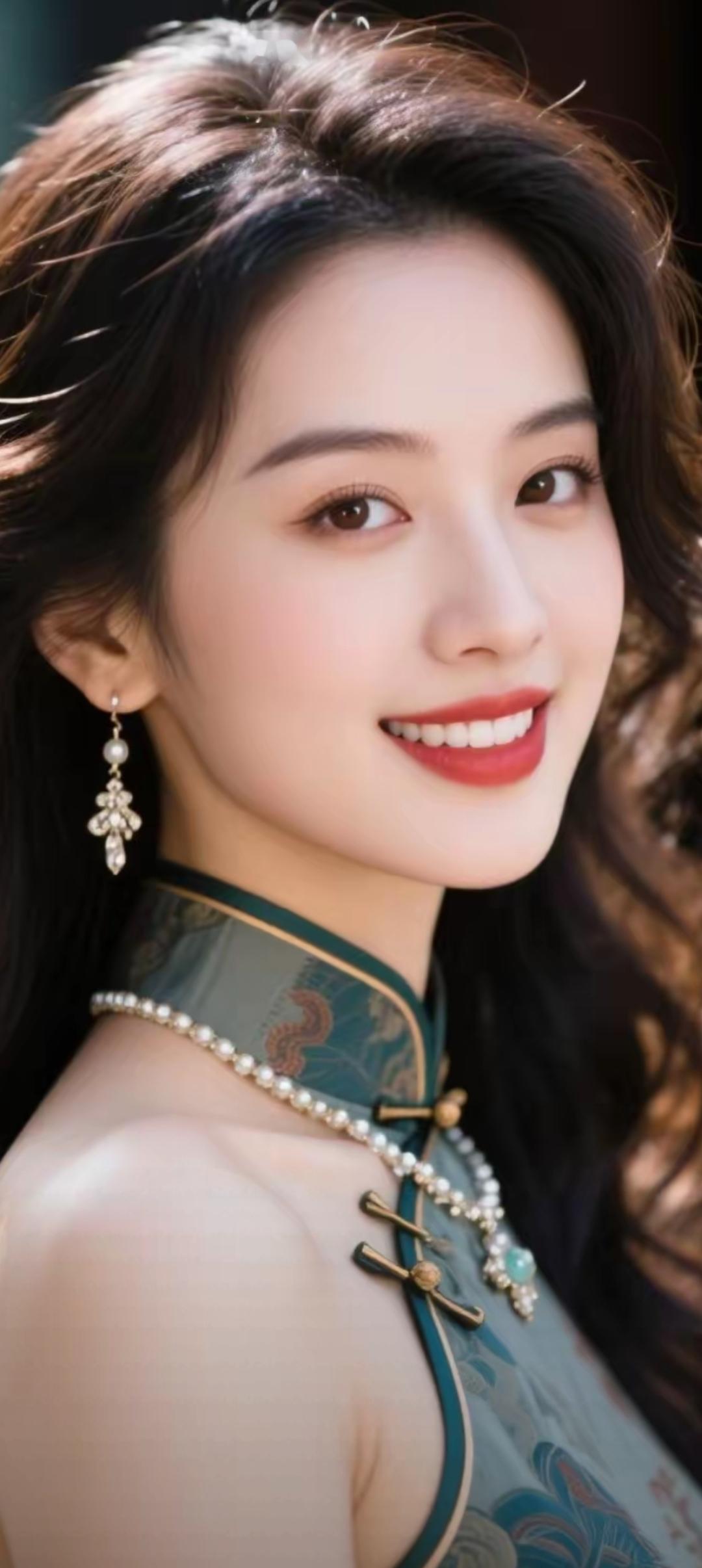 旗袍衬出优雅气质,微笑更添迷人魅力。