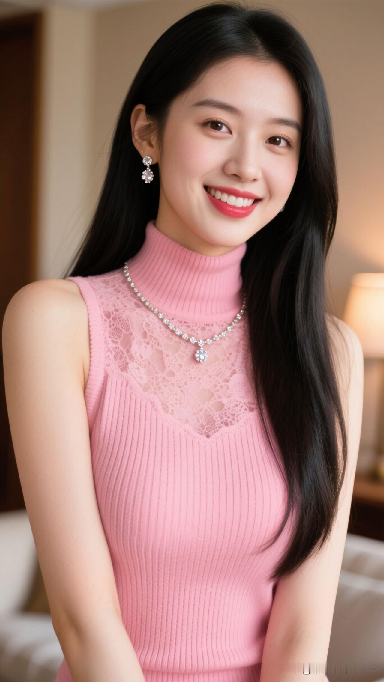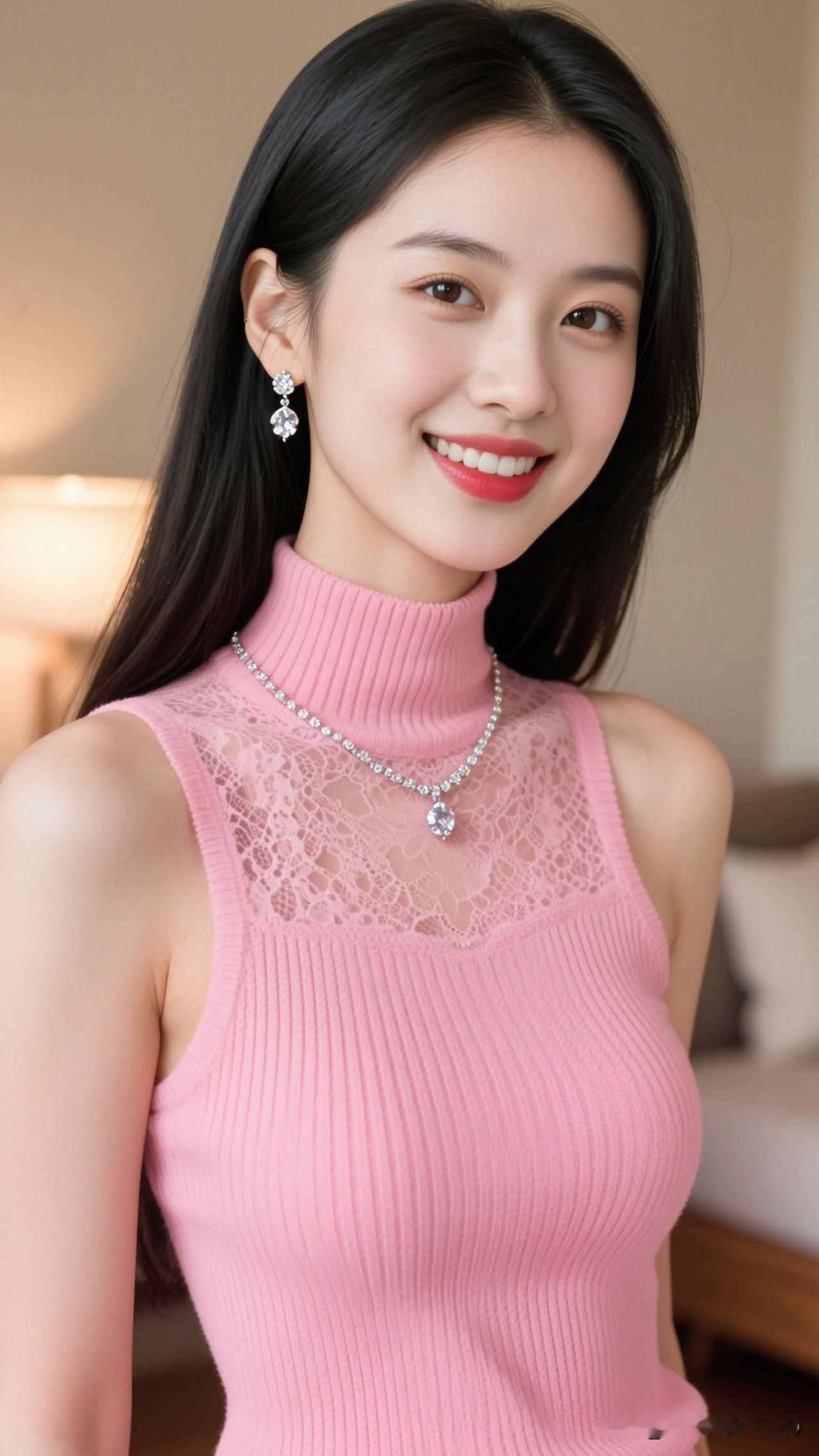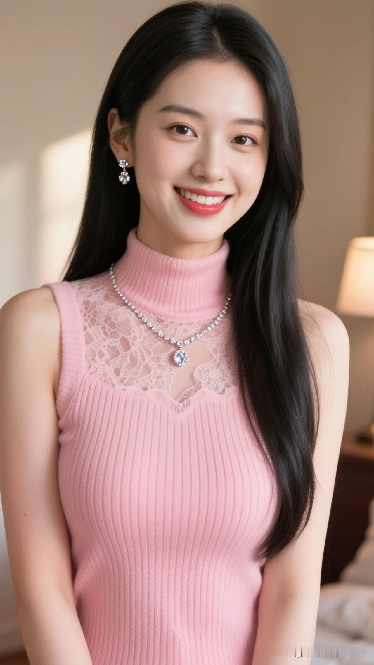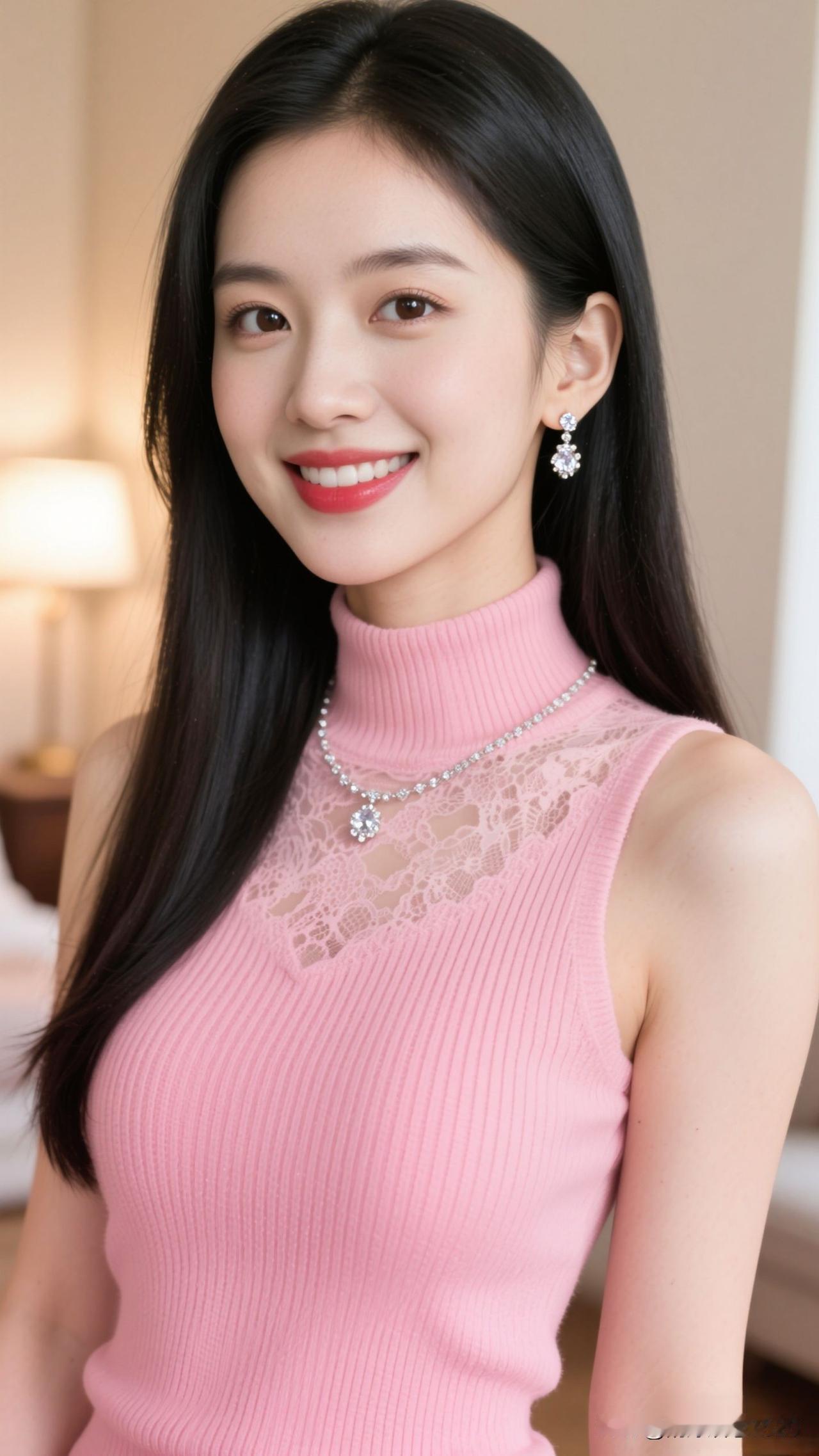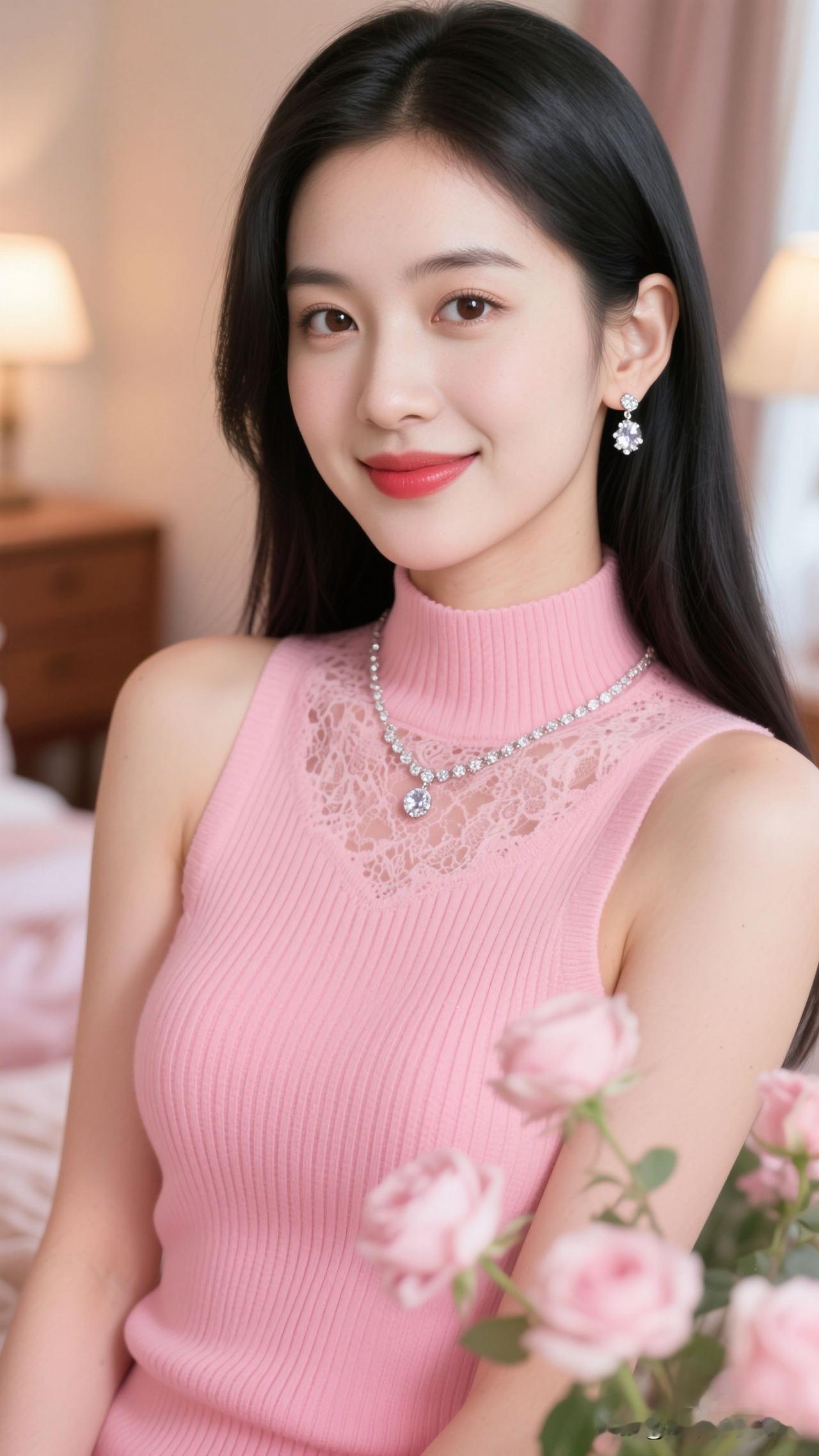 柔粉上衣盛着温柔的诗,钻链坠着银河的碎,在暖调空间里,她把日常酿成了甜美的梦。温
