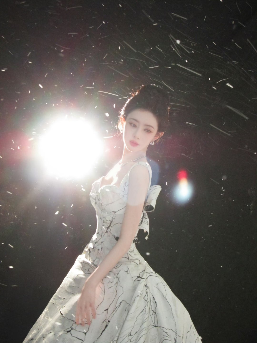 孟子义 冰雪公主当孟子义身披那袭冰裂纹高定纱裙踏光而来,便成了从雪域童话里走出来的冰雪公主。裙身银白冰纹如冰川碎裂的粼光,拖地裙摆铺开时似落满霜雪的银河,冷调眼妆衬得肤白胜雪,Chaumet珠宝又添几分贵气疏离,生图里提裙转身的刹那,连风都似为她定格成了雪域的留白。而雪地里她旋身起舞的模样更具浪漫质感,雪花落满发梢与裙摆,清冷眉眼间却漾着温柔笑意,将冰雪公主的冷艳与灵动完美融合,既像古堡里遗世独立的贵族,又似能唤醒冰封王国的神女,用一场造型封神打破“笨蛋美人”的刻板标签,让古董高定焕发新生,也把内娱红毯的冰雪美学演绎到了极致。
