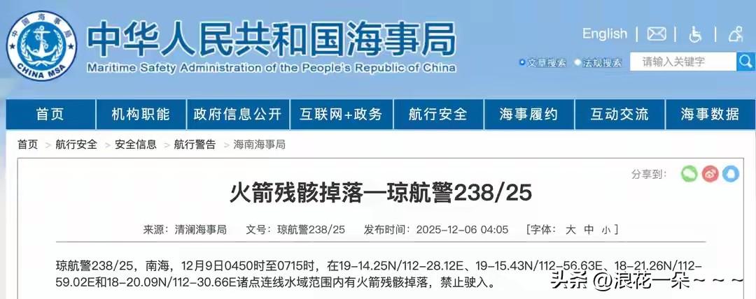 啥情况? 航行警告:南海海域有火箭残骸坠落? 火箭🚀!看到这个事,我怎么感觉祖国统一大业已经准备的大差不差了,就欠一个东风了呢。只是现在是冬季,西北风多一点,到了东南风很多的时候,风不就来了吗?因为,昨天我还看到了一个新闻,说福建海事正在开展台湾海峡中部海域搜救演练行动,这些事一叠加,动作这么多,都在南海,是不是统一大业近在眼前?!