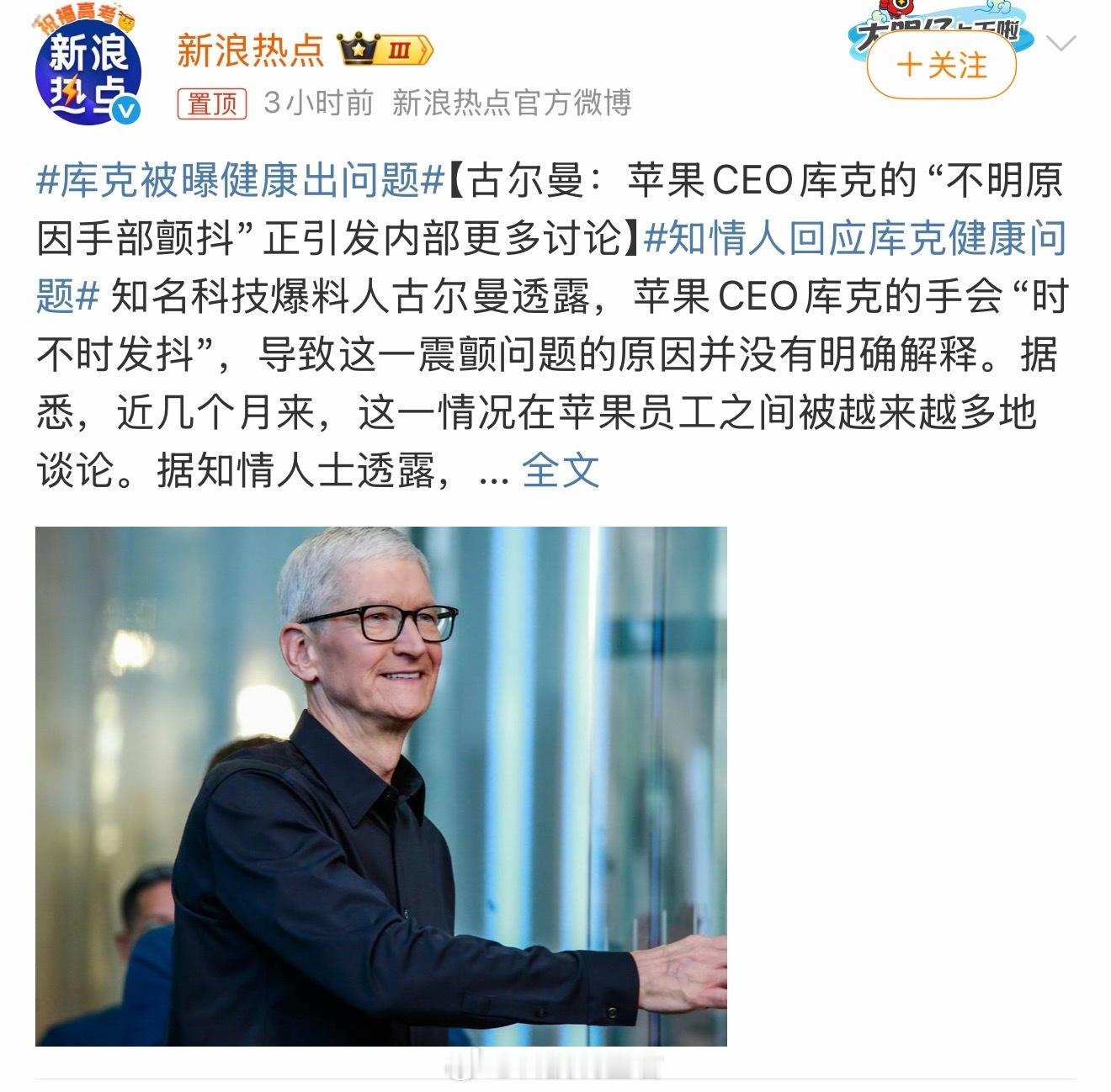 库克被曝健康出问题看状态还可以啊~