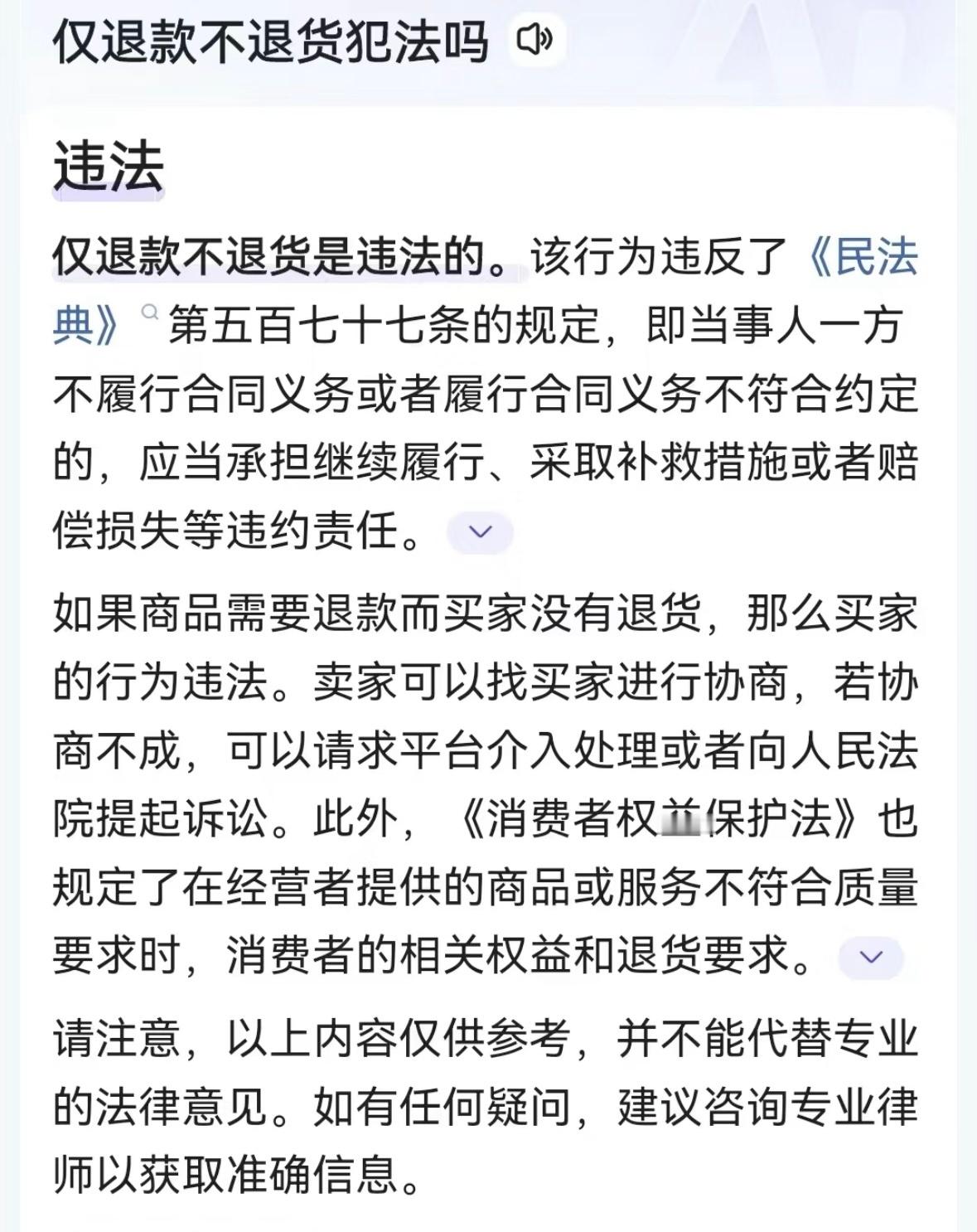 仅退款225个快递女子打造富婆人设挺好的,这个商家不接受私下和解,坚持起诉。需要让仅退款人群知道,仅退款是违法行为,它不能简单地被认为是贪小便宜。对电商来说,仅退款不仅破坏生态环境,还会导致商家进入低质低价竞争的恶性循环。这个规则本来是保护消费者,结果被人利用滥用,放大了人性的恶。有同行分享了仅退款的数据,里面还有不少学生群体,申请仅退款的理由千奇百怪,还非常理直气壮,这种风气太不好了。希望看到更多因为仅退款的人受到应有的惩罚。电商环境是时候回到正常状态了。分析:【仅退款225个快递女子打造富婆人设,败露后求卖家“留条路”,律师:已构成诈骗】律师称仅退款2