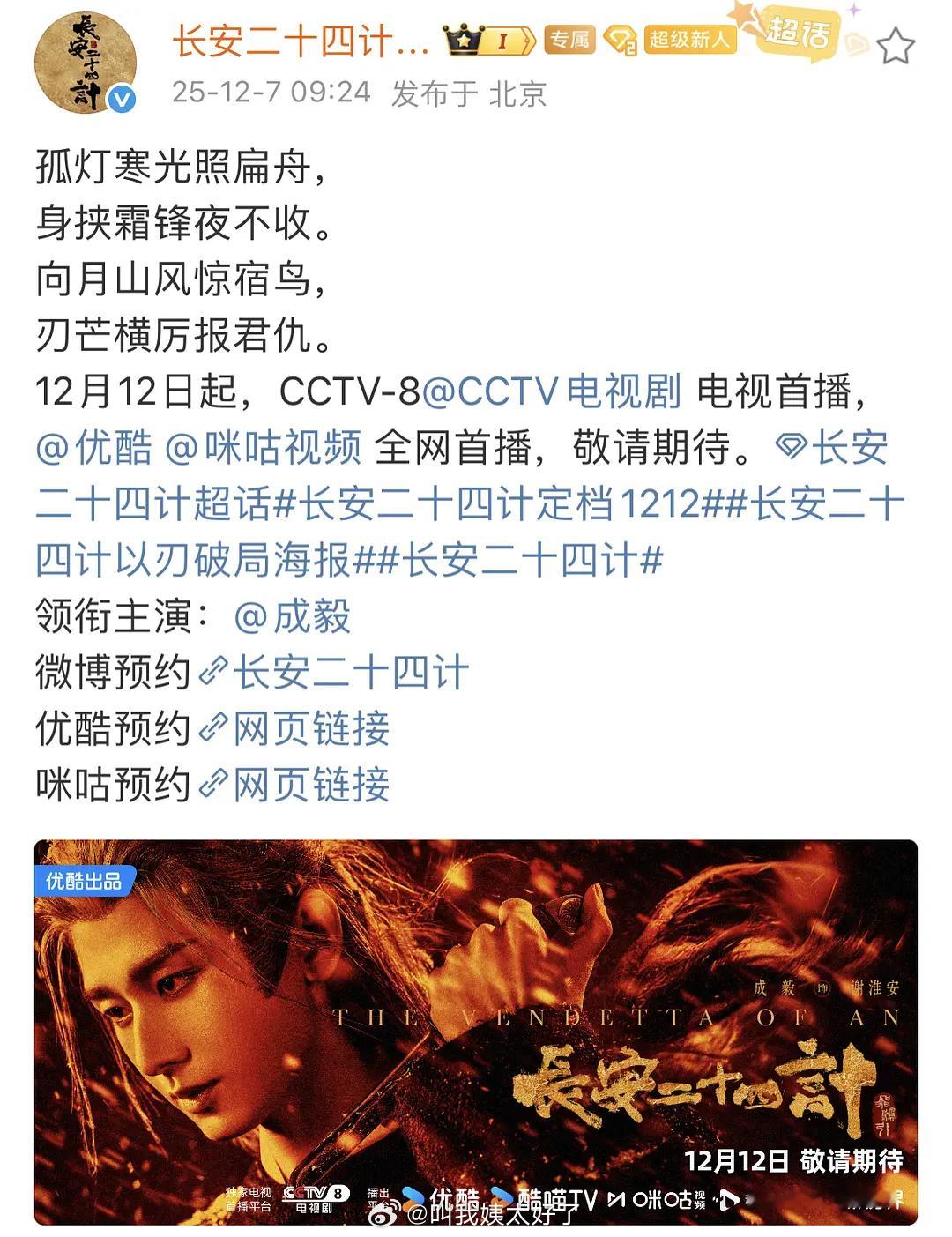 成毅的《长安二十四计》定档了,这部剧也是成毅有潜力爆火的一部作品,大家看好吗?长安二十四计定档