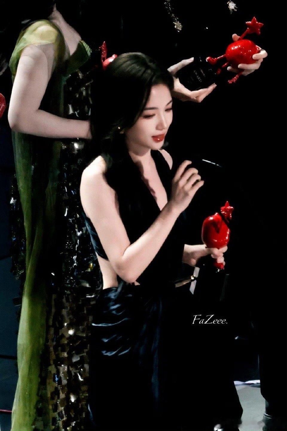 代露娃的背不拔罐可惜了 救命!代露娃黑色挂脖露背裙杀疯了!后背线条又直又薄,优越曲线一览无余,难怪网友直呼不拔罐可惜!卷发黑裙自带归国千金气场,内场造型利落舒展,颜值身材双在线美到移不开眼✨