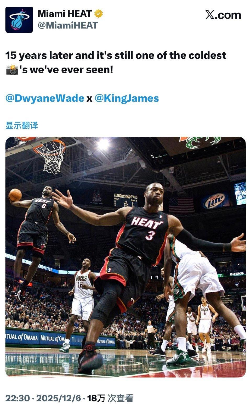 控制了?迈阿密热火队官推:15年前,韦德与詹姆斯留下了这张历史经典一幕!