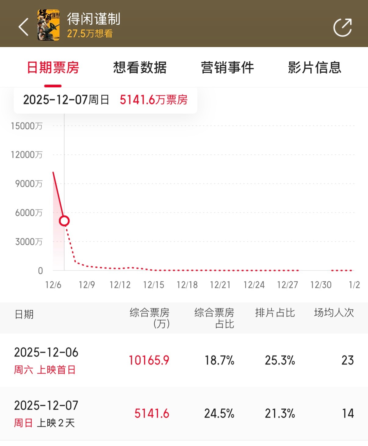同样是周六上映的两部电影:《狂野时代》首日票房8000万,第二日3700万《得闲谨制》首日票房一亿+,第二日预计6600万是不是说明后者因为题材原因路人进电影院的更多一些。