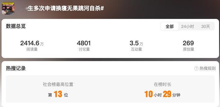 话题近日冲上热搜,背后是一起令人痛心的悲剧。 2024 年 9 月,江西赣州某技术学院新生赖某,因无法忍受宿舍环境,多次申请换寝未果后跳河身亡,近日法院一审判决学校承担 30% 责任,赔偿家属 302946.1 元。 去年 9 月 18 日,赖某入学报到,仅三天后就向辅导员求助换寝。他在微信中哭诉,5 名室友里 4 人长期抽烟,宿舍乌烟瘴气,且全员通宵打游戏到凌晨两点,自己对烟味极度敏感,根本无法休息,甚至绝望表示 “再这样下去,我真要跳了,真的窒息”。但辅导员仅以 “太远了不好管理” 为由拒绝,仅通过语音通话简单安抚,未采取任何实质性措施。 9 月 23 日,学校发现赖某失联后报警,次日其尸体在赣州市经开区某河道被找到,法医鉴定为溺亡,排除他杀。庭审中,校方辩称已多次安抚赖某,且其作为成年人应自行担责,但法院审理认为,校方明知学生面临严重心理危机,却未及时调宿或提供心理辅导,处理存在明显疏漏,与自杀结果存在因果关系。 最终法院判定,赖某需承担主要责任,学校因未尽到管理义务承担 30% 次要责任。此案引发热议,网友纷纷呼吁高校重视宿舍矛盾,完善换寝机制和心理干预体系。 30 万赔偿换不回年轻生命,这起悲剧也给所有高校敲响警钟:学生的合理诉求不应被忽视,及时的干预和解决才是守护生命的关键。