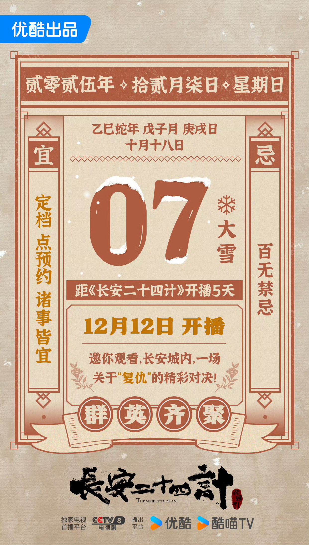 成毅长安二十四计定档1212,倒计时5天