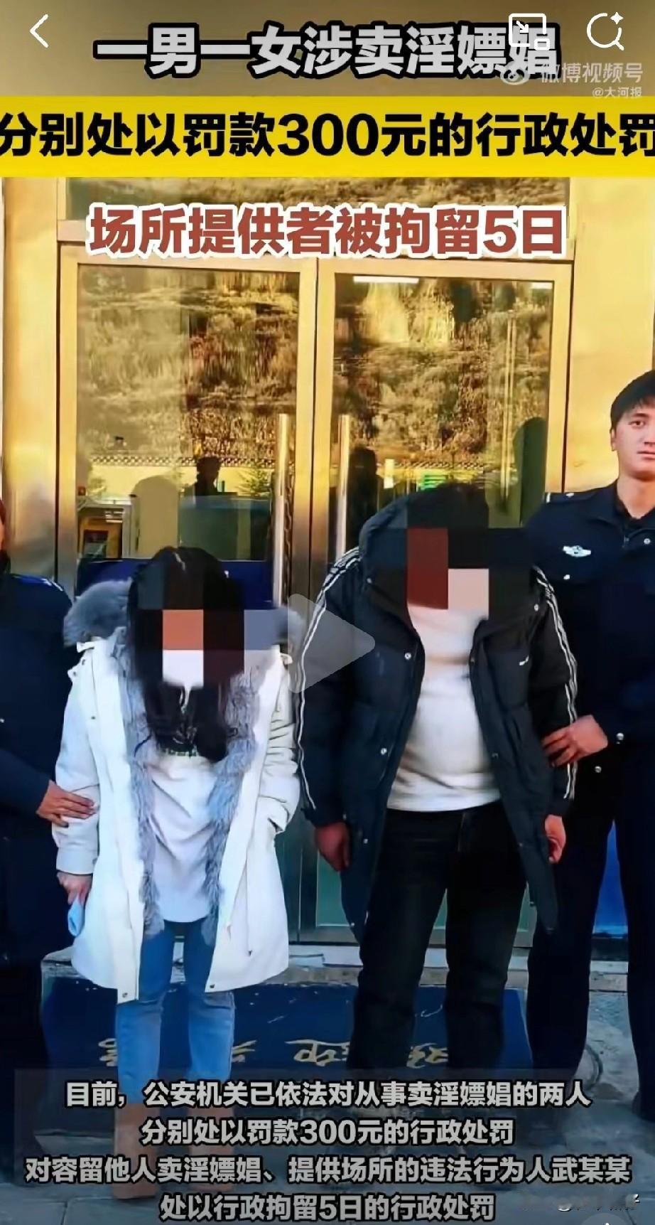近日,四川省甘孜州新龙县公安局查获一起容留及卖淫嫖娼案,根据警方通报,公安机关对从事卖淫嫖娼的两人分别处以罚款300元的行政处罚,而对容留他人卖淫嫖娼、提供场所的武某某处以行政拘留5日。 这一处罚引发不少网友疑问:“300元罚款,到底谁会在意?”根据现行有效的《治安管理处罚法》第六十六条,300元的罚款确实符合法律对“情节较轻”的卖淫嫖娼行为的处罚幅度。 从2026年1月1日起,新修订的《治安管理处罚法》将正式实施。新法将“情节较轻”的罚款额度从“五百元以下”提高到了“一千元以下”。违法成本可能随社会发展调整,以保持适当的威慑力。警方在通报中表示,此举旨在“净化社会环境”。净化社会环境仅靠罚款是不够的,需要多层次、多维度的综合治理。