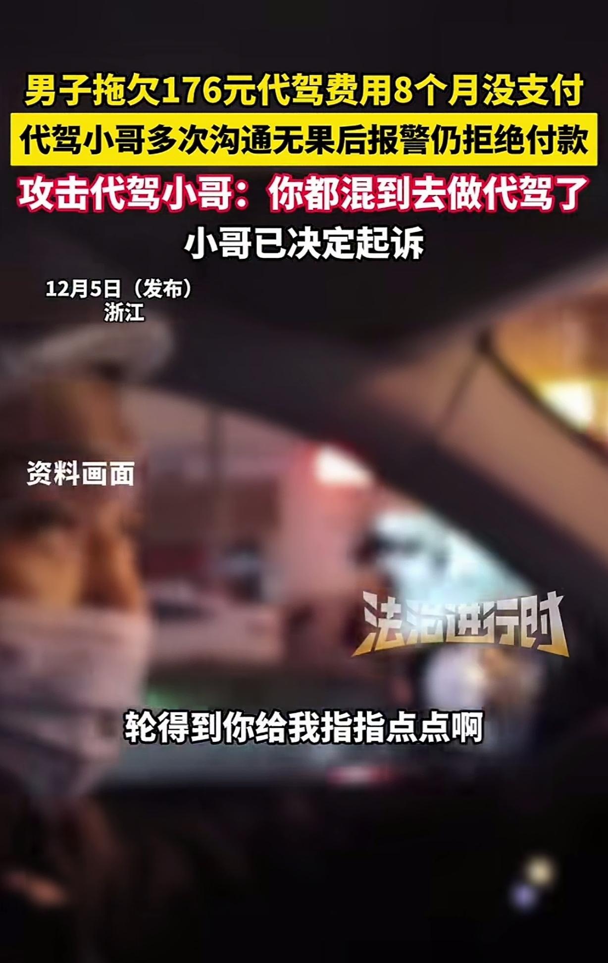 浙江,一男子开了辆30多万的理想one车,觉得自己很牛掰,拖欠176元代驾费8个月都不支付,代驾小哥愤怒的报了警,万万没想到,男子仍拒绝付款,还侮辱代驾小哥:你都混到去做代驾了。代驾小哥气的决定起诉男子。 一男子从事代驾工作,每天起早贪黑,风雨无阻,虽然很辛苦,但为了养家糊口也没办法。 俗话说,人上一百形形色色,男子代驾生涯会遇到各种各样的人,客户有的酩酊大醉,有的出言不逊,有的不尊重人,有的脾气很大。 但客户都知道代驾这个工作不容易,也很辛苦,代驾结束后,都按时支付代驾费。 可这一天男子却突然遇到一个开理想one车的客户,对方却拒绝支付176元代驾费。 男子跟客户沟通了几次,看他还是死皮赖脸,气的报了警。 可出乎意料的是,连帽子叔叔都拿这个人没办法,对方还是拒绝支付代驾费。 男子无奈,也不能因为176元,劳民伤财起诉对方吧,可自己如果认了,那就白辛苦了,他咽不下这口气。 这天,他又给客户打去电话,要求他支付代驾费,没想到,客户却装傻充愣,问男子,什么代驾费? 男子真是无语了,这不是揣着明白装糊涂吗?但他忍住怒火,还是和颜悦色的提醒客户,就是3月份的那一单。 不料客户并没直接回答,反而质问男子打这个电话啥意思?又在威胁他是吗? 男子气的怒火中烧呀,明明对方耍赖,可他倒是理直气壮,你说他也不是差这176块钱的人,为啥为难他这个下苦力的人呢?他什么时候威胁他了呢?真是强词夺理呀! 男子问客户,他怎么就成了威胁了呢?客户不依不饶,又继续反问:没有威胁吗? 男子问客户,帽子叔叔给他打电话,他也不付,他为啥这么做? 客户还是不回答男子,继续胡搅蛮缠,说他感受到了男子的威胁,而且,在客户看来,应该是代驾平台跟他沟通,而不是男子出面。 男子闻听,气的真是捶胸顿足,他怒怼客户:帽子叔叔跟你沟通都没用,平台跟你沟通? 客户却继续无理取闹:那为什么帽子叔叔跟我沟通没用? 男子问客户,他是缺这176元吗,客户厚颜无耻的说,没错,他太缺了。 男子已经忍无可忍了,他义正言辞告诉客户,这件事8个月了都没解决,一个多月的时候,客户跟帽子叔叔说,他的车被男子刮了,可他去查监控了,到底刮没刮一清二楚,他不能在这里诬赖好人。 可客户却说但如今物业也没把监控给他看,他当然不能支付代驾费。 客户继续攻击男子,说他都混到去做代驾了还牛什么牛? 男子不卑不亢,说自己做代驾咋了?轮到客户指指点点? 在男子看来,虽然他做代驾,但凭努力挣钱,没偷没抢,职业没有高低贵贱,客户虽然开着理想one,可拖欠代驾费不给,他的行为很可耻,没资格看不起别人。 不料,客户最终还要求男子跟他道歉,男子质问,凭啥给他道歉,他欠钱不给还有理了? 男子知道,跟这个人没办法讲道理,虽然才176元代驾费,但他还是决定起诉客户。 这种简单的事情,本来就应该立刻解决,帽子叔叔完全可以执法。为什么让普通人为了100多元进行这么复杂的起诉,浪费时间金钱。 平台就只管抽成,出了任何事他们都不管,看中的只有利益,矛盾需要转移!这些平台不都这样吗?你像外卖平台,骑手小哥动不动和商家干了,要么和顾客干了,这就是平台把矛盾转移到他人身上! 这开理想one的男子也太不地道了!开好车就觉得自己牛掰,拖欠176元代驾费8个月,还各种耍赖。 代驾小哥辛苦工作,靠自己的努力养家糊口,每一分钱都挣得不容易,这男子却毫无同理心,不仅拒绝付款,还侮辱代驾小哥,说人家“混到去做代驾”,这职业歧视也太明显了。职业本就没有高低贵贱之分,凭劳动挣钱都值得尊重。 而且,帽子叔叔介入都没用,平台也只管抽成不管事,把矛盾都推给普通劳动者,这太不合理了。 为了这176元,代驾小哥要耗费时间和精力去起诉,成本太高。 这男子有钱开好车,却缺这点德,其行为实在可耻。希望法律能给代驾小哥一个公正的结果,让这种耍赖、不尊重他人的人受到应有的惩罚,也让大家明白,无论贫富贵贱,都要遵守道德和法律底线。 《民法典》第55条规定:当事人一方不履行合同义务或者履行合同义务不符合约定的,应当承担继续履行、采取补救措施或者赔偿损失等违约责任。 代驾服务本质上是服务合同关系,代驾小哥提供驾驶服务,客户有支付相应报酬的义务。 案例中,开理想one的男子在接受代驾服务后,拖欠176元代驾费8个月,经代驾小哥多次沟通、报警协调仍拒绝支付,其行为明显违反了合同约定,构成违约。 代驾小哥有权依据该条款要求男子继续履行支付代驾费的义务,如果男子仍不履行,代驾小哥可向法院提起诉讼,要求男子支付代驾费及可能产生的利息、诉讼费等合理费用。 法律面前人人平等,无论贫富贵贱,都应遵守道德和法律底线,该男子的行为不仅违背道德,也触犯了法律,应受到相应惩罚。 关注@灋律盐究员 学法辩是非,用法止纷争。
