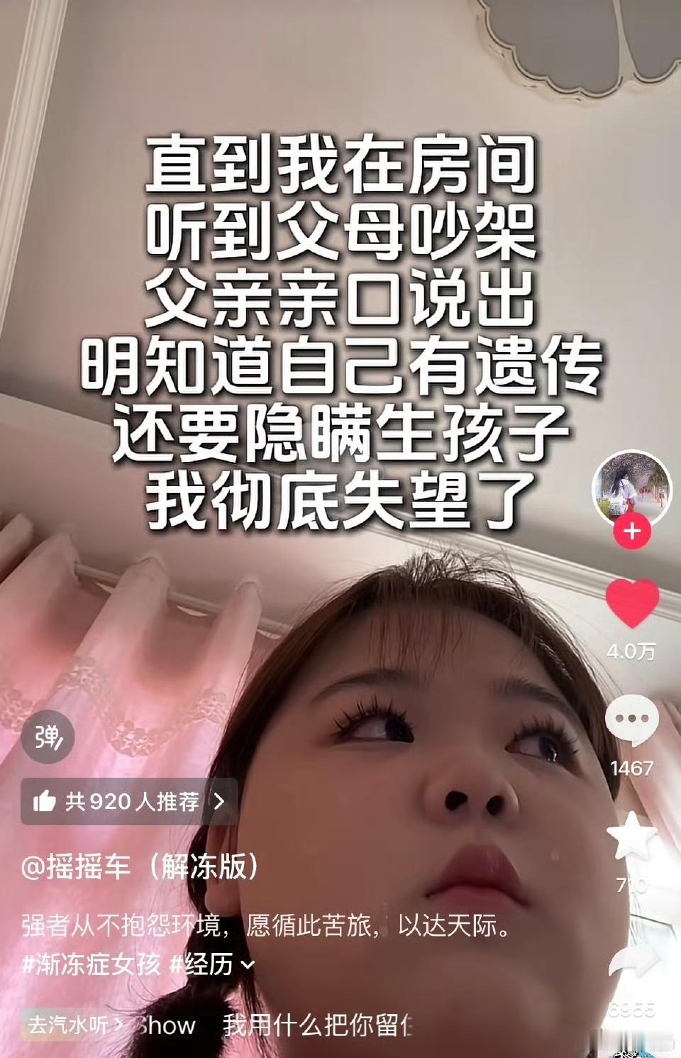 男子隐瞒遗传病生子,女儿患渐冻症!这不是意外是自私的背叛 看到男子隐瞒渐冻症遗传病史,导致女儿出生后确诊患病的新闻,心里满是愤怒和心疼。渐冻症存在遗传因素,作为父亲明知自身携带致病基因,却刻意隐瞒让伴侣在不知情的情况下怀孕,这不仅是对配偶知情权的践踏,更是将孩子推向了无法挽回的病痛深渊。 从法律层面来说,一方婚前隐瞒重大疾病,另一方有权请求撤销婚姻,可即便婚姻被撤销,孩子患上的渐冻症却无法逆转,终身要承受肌肉萎缩、行动受限的痛苦。这种为了一己之私无视生命的行为,既违背了道德底线,也让一个家庭陷入了无尽的绝望。希望法律能给予受害方应有的保护,也愿社会能更重视婚前遗传咨询,避免这样的悲剧再次发生。渐冻绝症 渐冰症 渐冻群体 渐冻症女孩 婚前隐瞒疾病