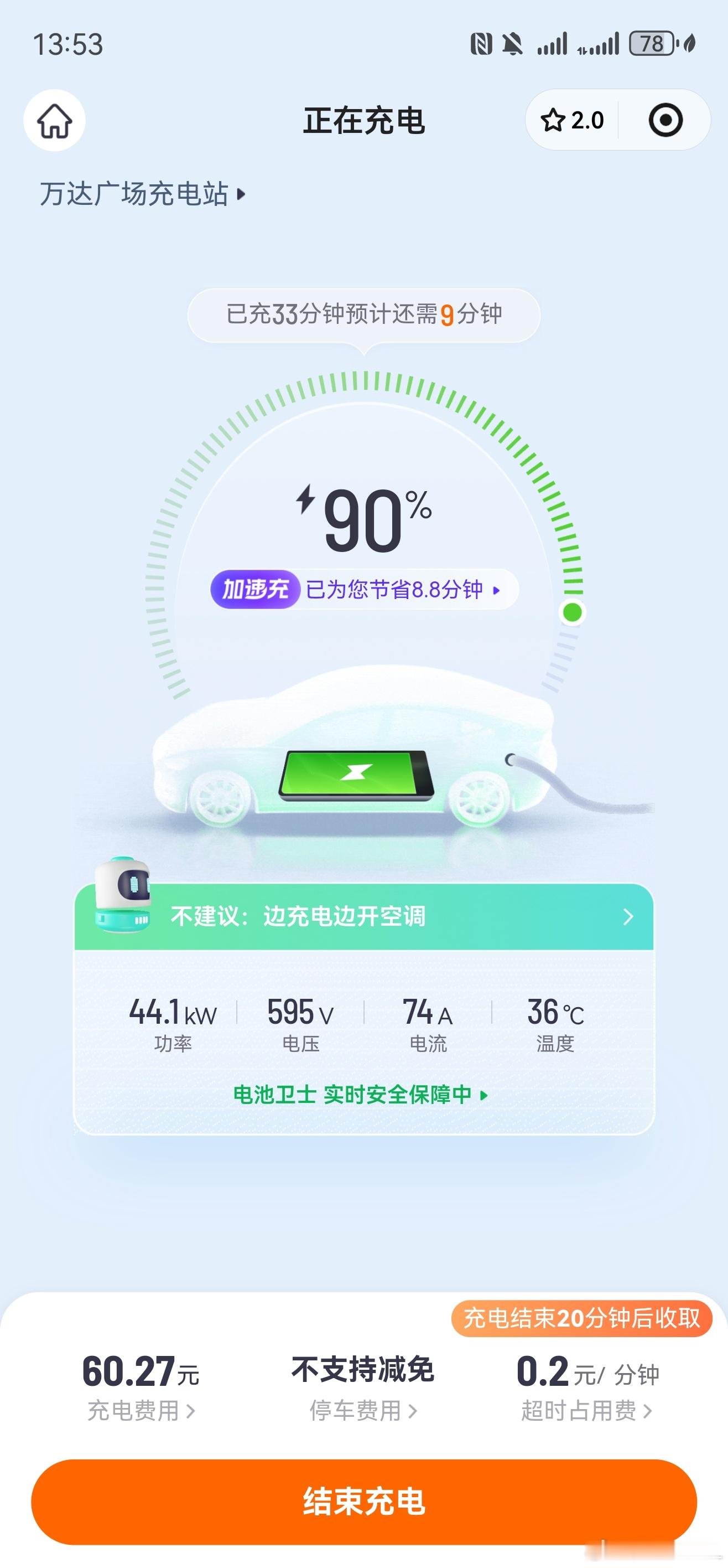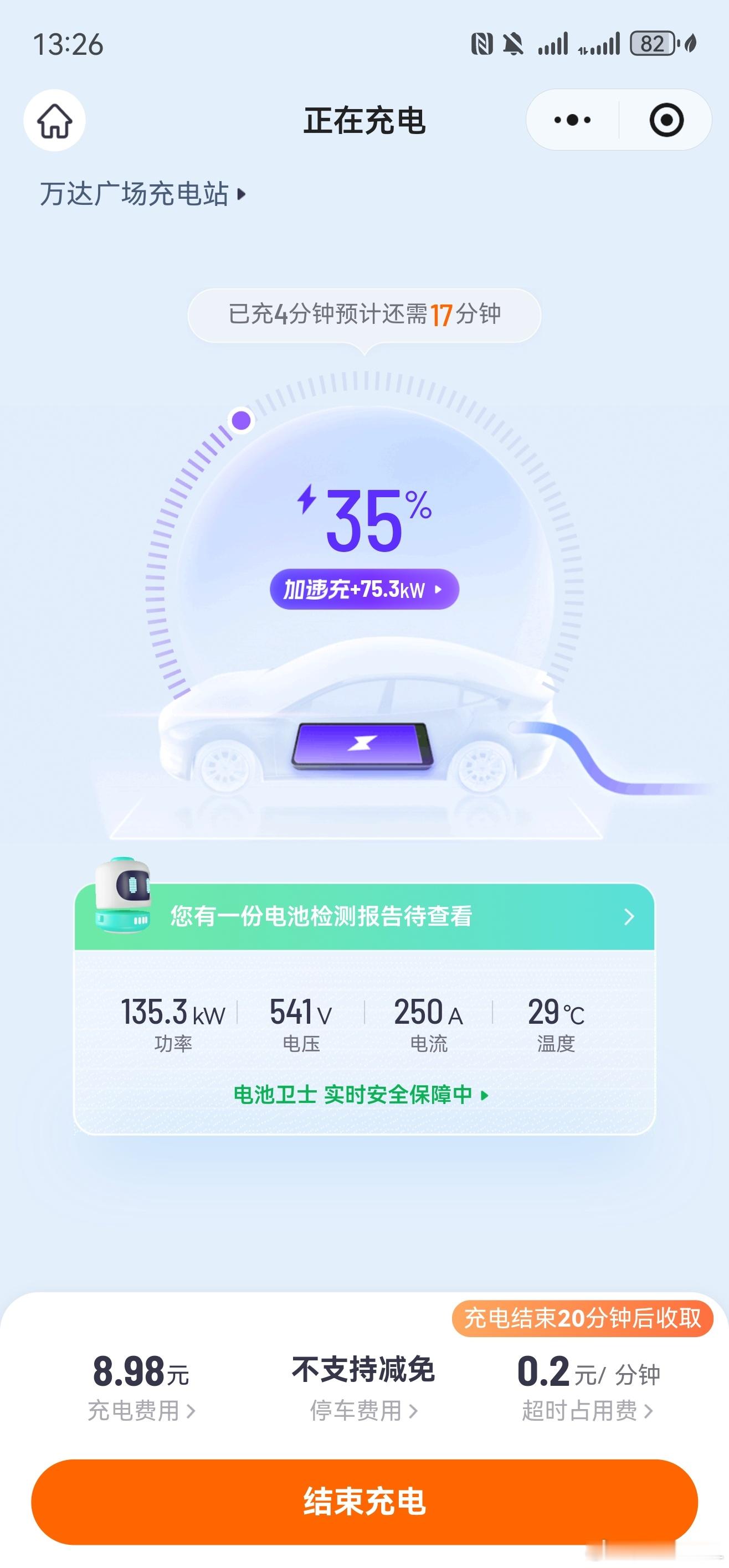 出来吃个饭,顺便给大白充个电。我发现Hi4-Z的电池温控冷却系统很牛逼啊。刚开始充的时候功率135kW,温度29度。90%电量后开始降功率,温度也就只有36度。