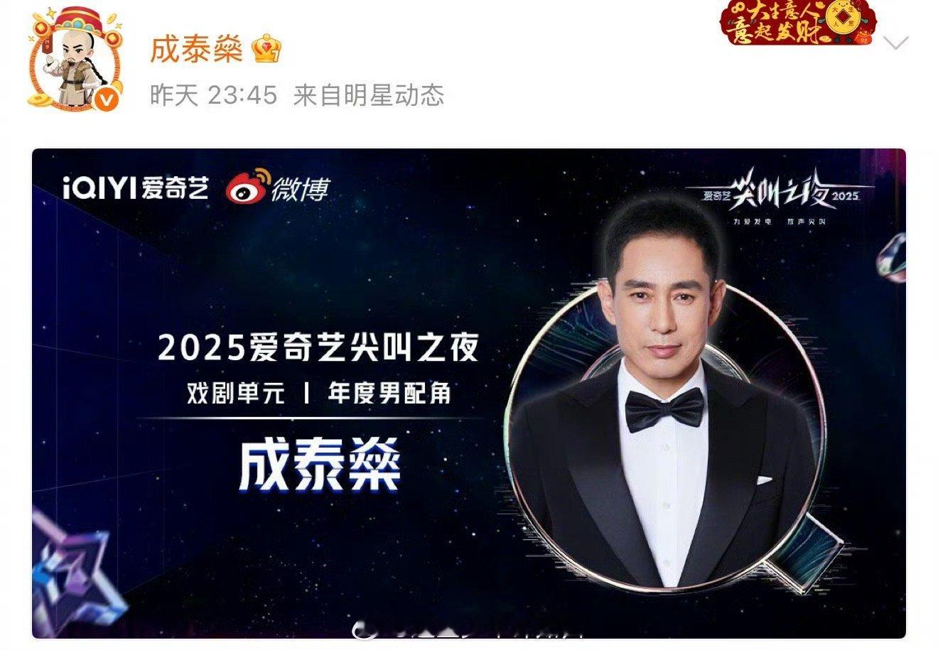 成泰燊迟蓬获奖是演技的胜利 一份颁给演技的嘉许!成泰燊与迟蓬在尖叫之夜拿下年度男女配角,完美印证了好演员终将被看见。他们用数十年的艺术沉淀,在《觉醒年代》《百鸟朝凤》等作品中塑造了一个个经典,今晚的荣誉,他们当之无愧。