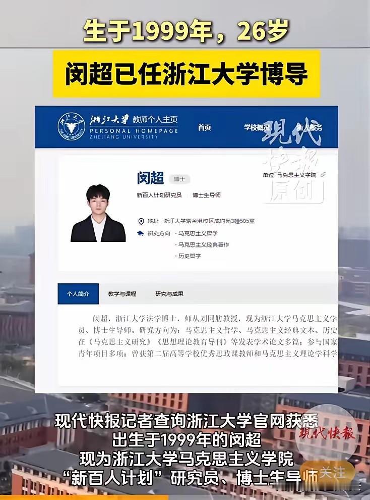 浙大马院:出了个26岁的博导!是的,没有看错!中国顶尖985浙江大学出了一个奇 【2评论】【1点赞】 浙江大学 浙江大学紫金港校区 马克思主义哲学 马克思主义学院 大学 财神到我家 2025-12-09