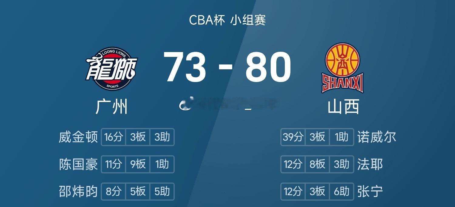 12月07日 25/26赛季CBA杯 小组赛,山西对阵广州。双方全场战罢,山西80-73战胜广州。cbaCBA 诺威尔砍下全场最高的39分3板1助,率领山西成功取胜。