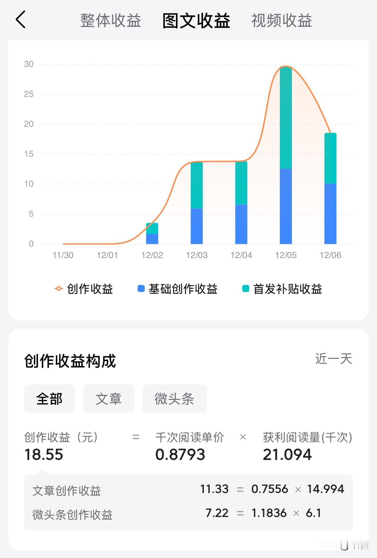 这个文章千次阅读的单价也太低了 微头条能有1块多的单价,文章直接变成7毛多,我记得第一次文章的单价还有1块多呢 昨天收益更新了,看了一下18块多,比昨天少了10块,阅读量少了7000, 虽然说这个金额没多少,但是还是比较满足了,我看很多人都是几毛几分,我毕竟来头条也是才几天而已 现在的单价应该是和阅读时长有关,时长高了,单价就会上去,应该是这样, 有懂的朋友,也可以评论区来讨论下 最近都有在坚持发文,虽然说流量不高,但是每天总归是有个念想 后面的路还长,一起加油