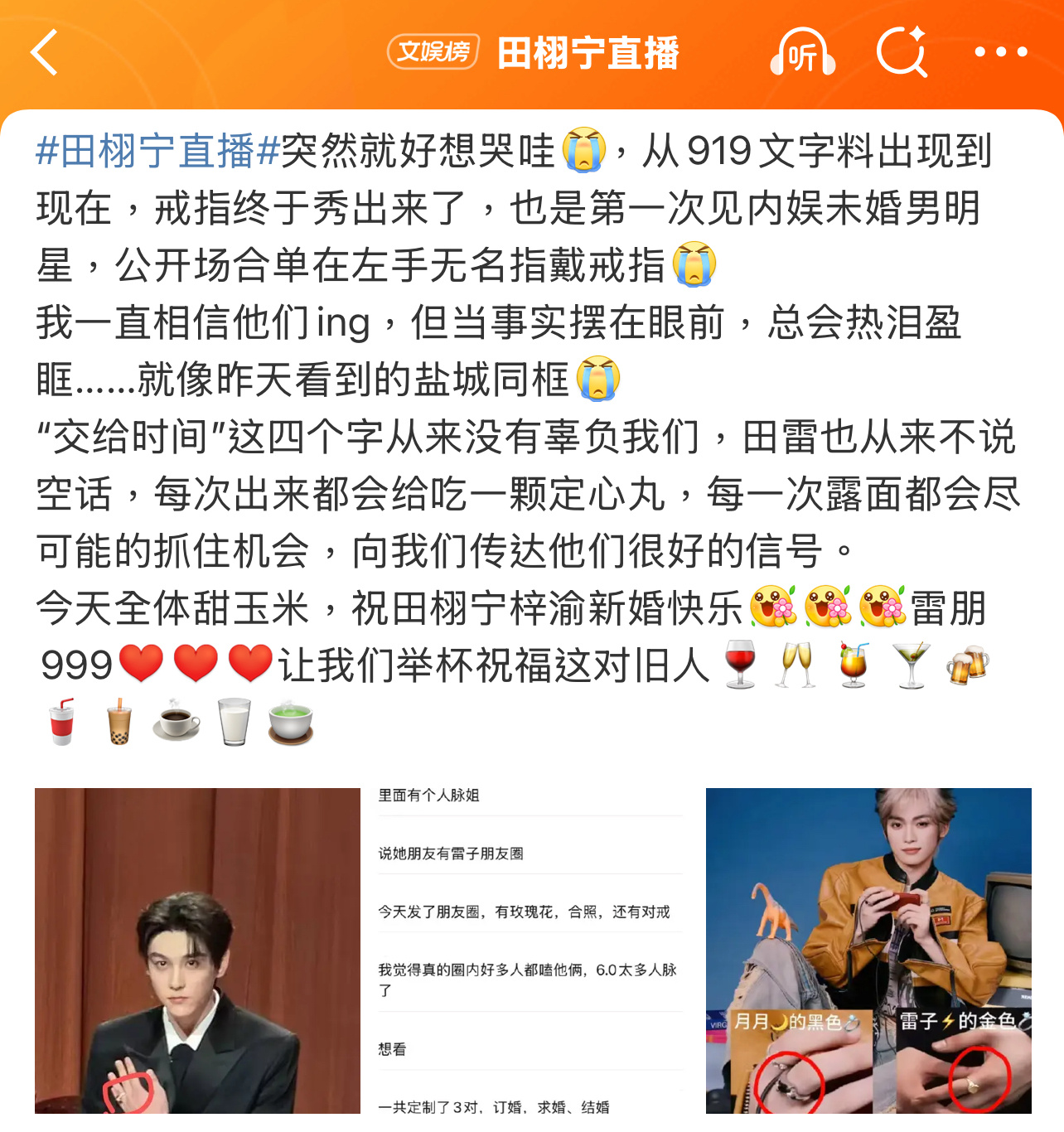 这也能嗑田栩宁梓渝?田栩宁直播田栩宁戒指