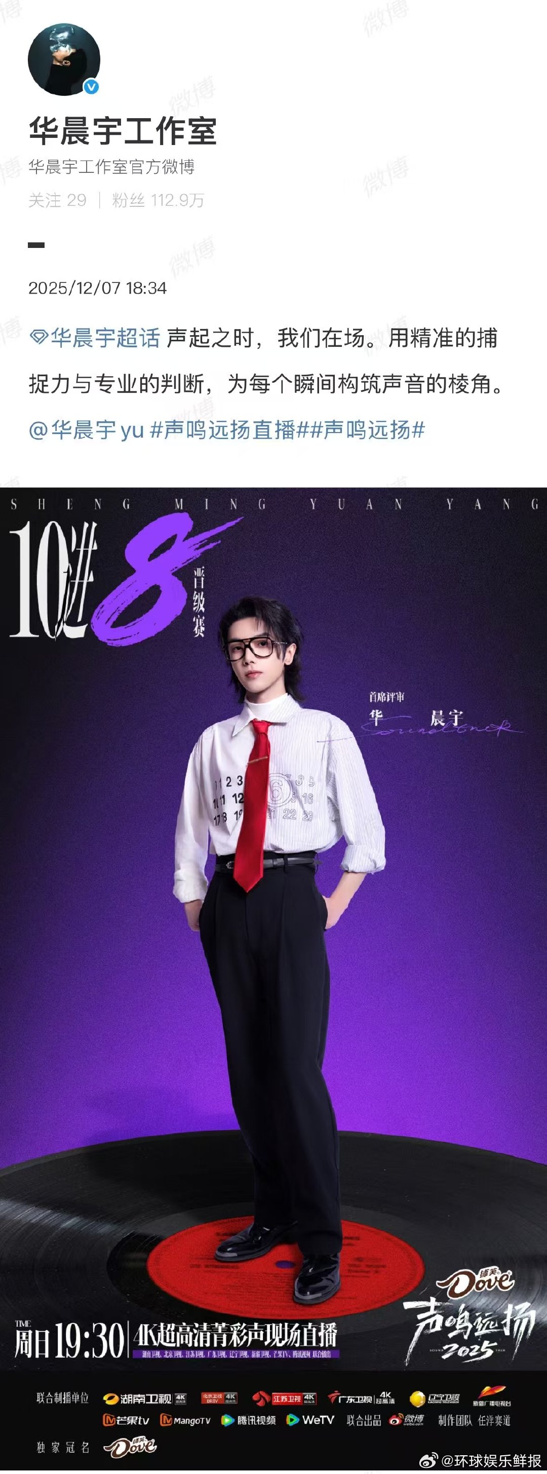 华晨宇回归声鸣远扬声鸣远扬 重磅官宣!演唱会圆满落幕,即刻回归声鸣远扬,专业又有梗的他,今晚直播绝对全程高能,蹲住~