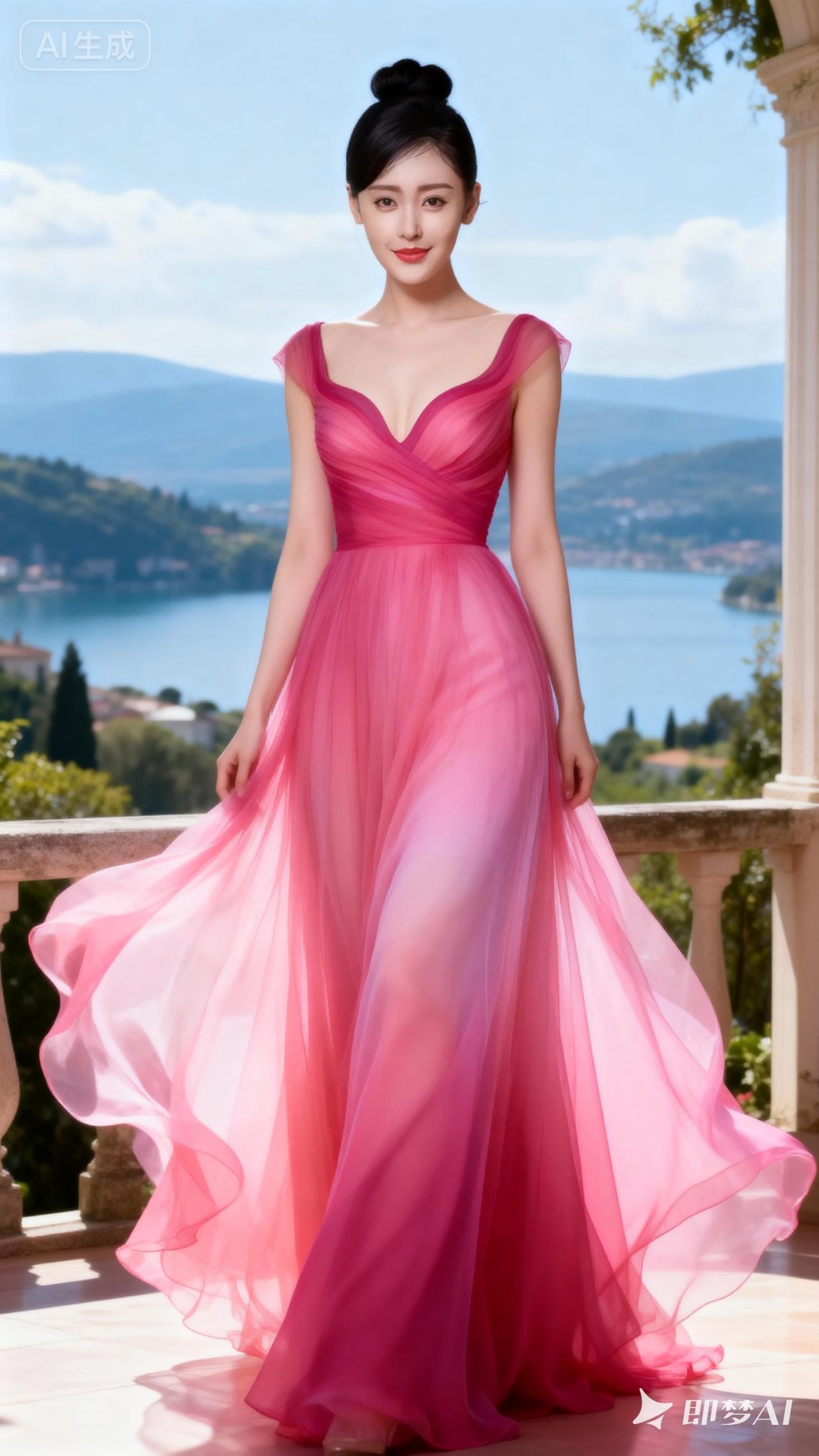 春日少女,粉花映笑颜,红裙飘逸间🌸💃