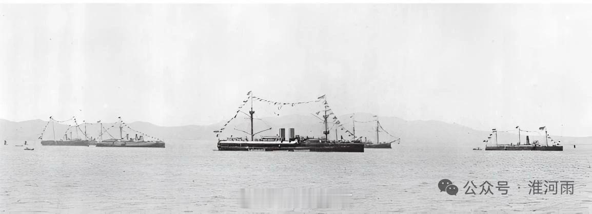 北洋水师 1894年5月,集结在大连湾等待李鸿章校阅的北洋舰队。谁也没想到,4个月后,北洋舰队将会参加中日两国之间规模最大的一场海战,且在海战中被对手摁住暴打。