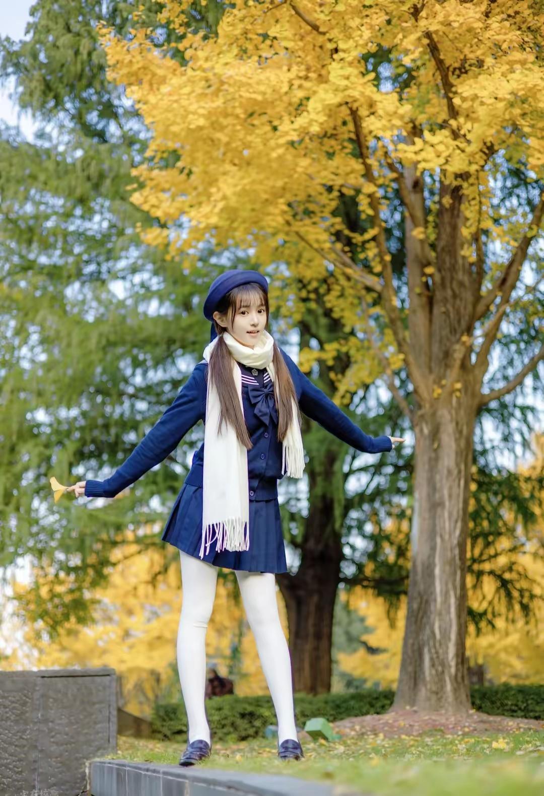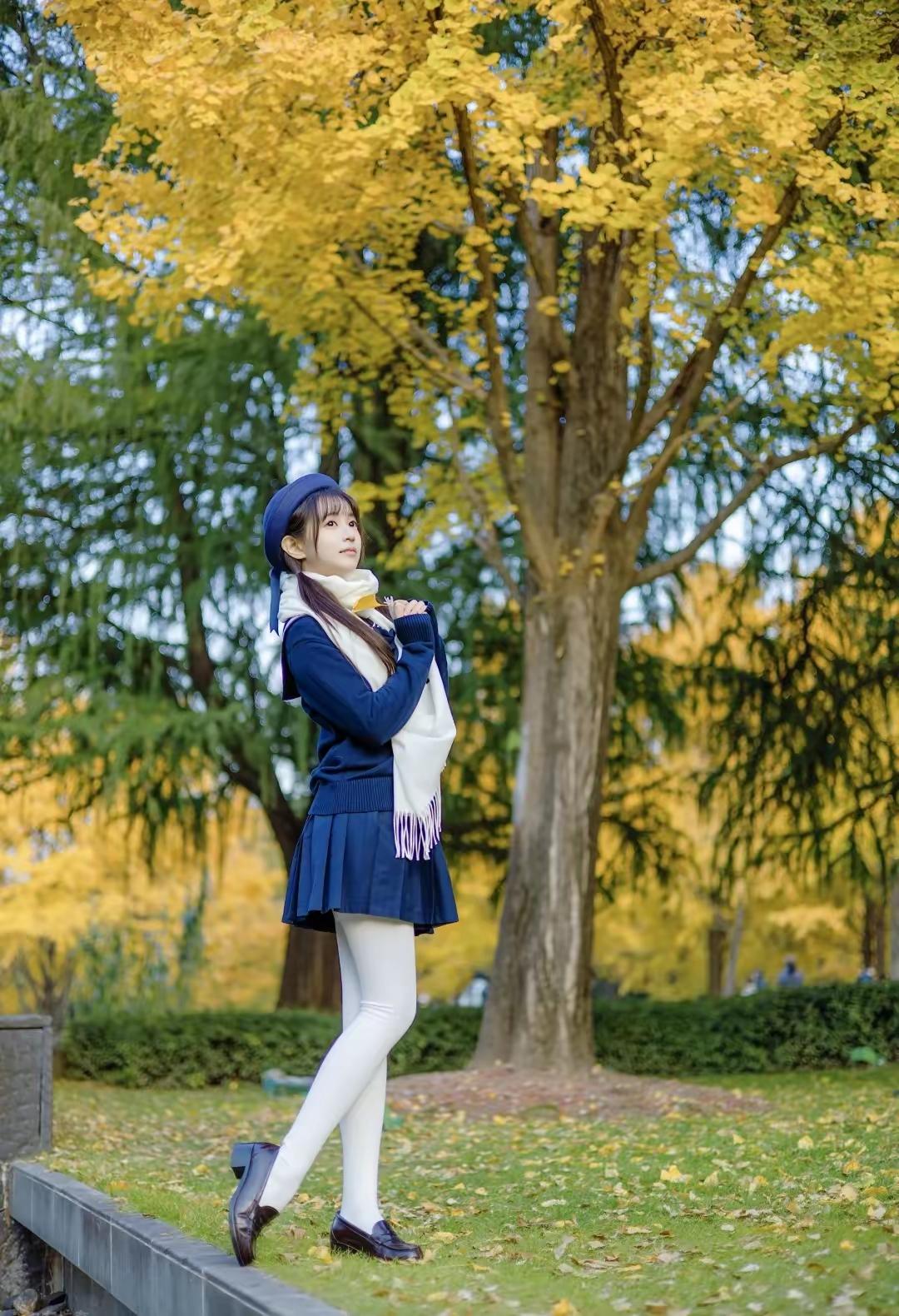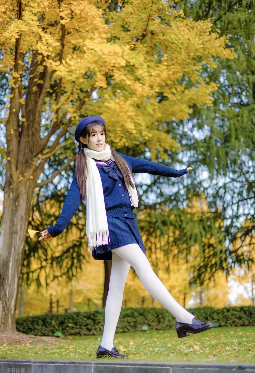 秋日校园少女,蓝白相间,落叶飘零白丝[话题]