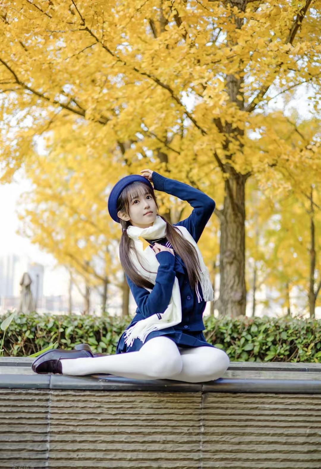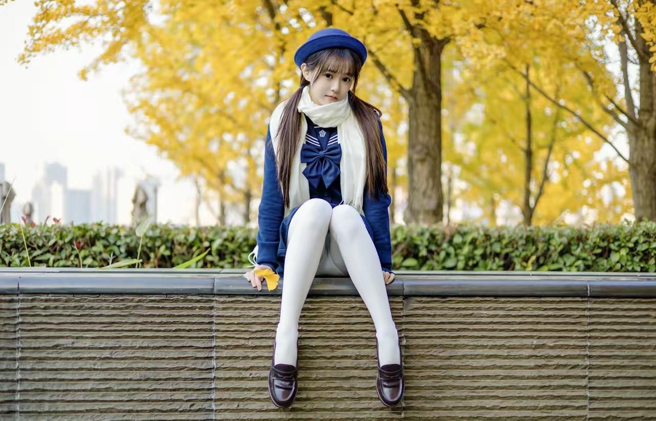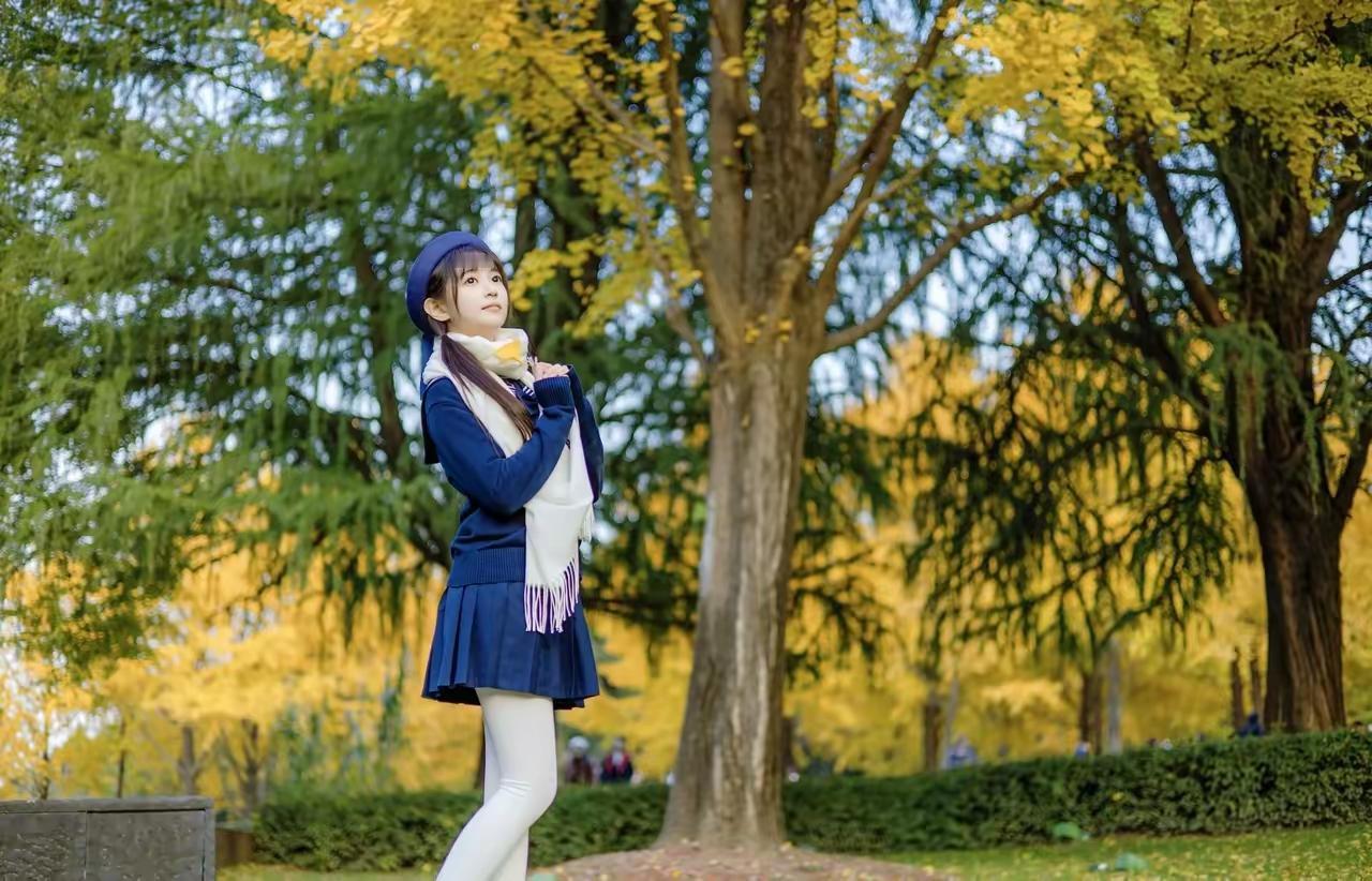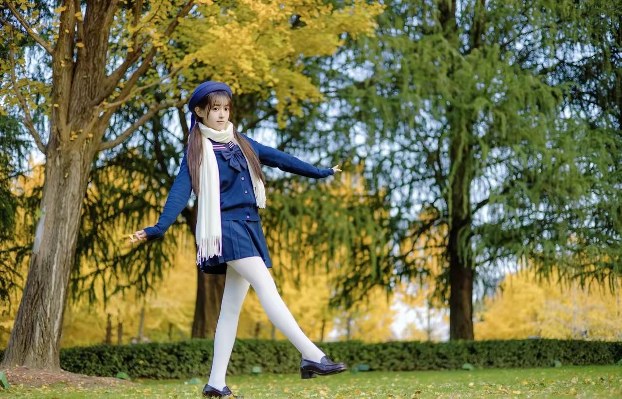 秋日校园少女,蓝白相间,落叶飘零白丝[话题]
