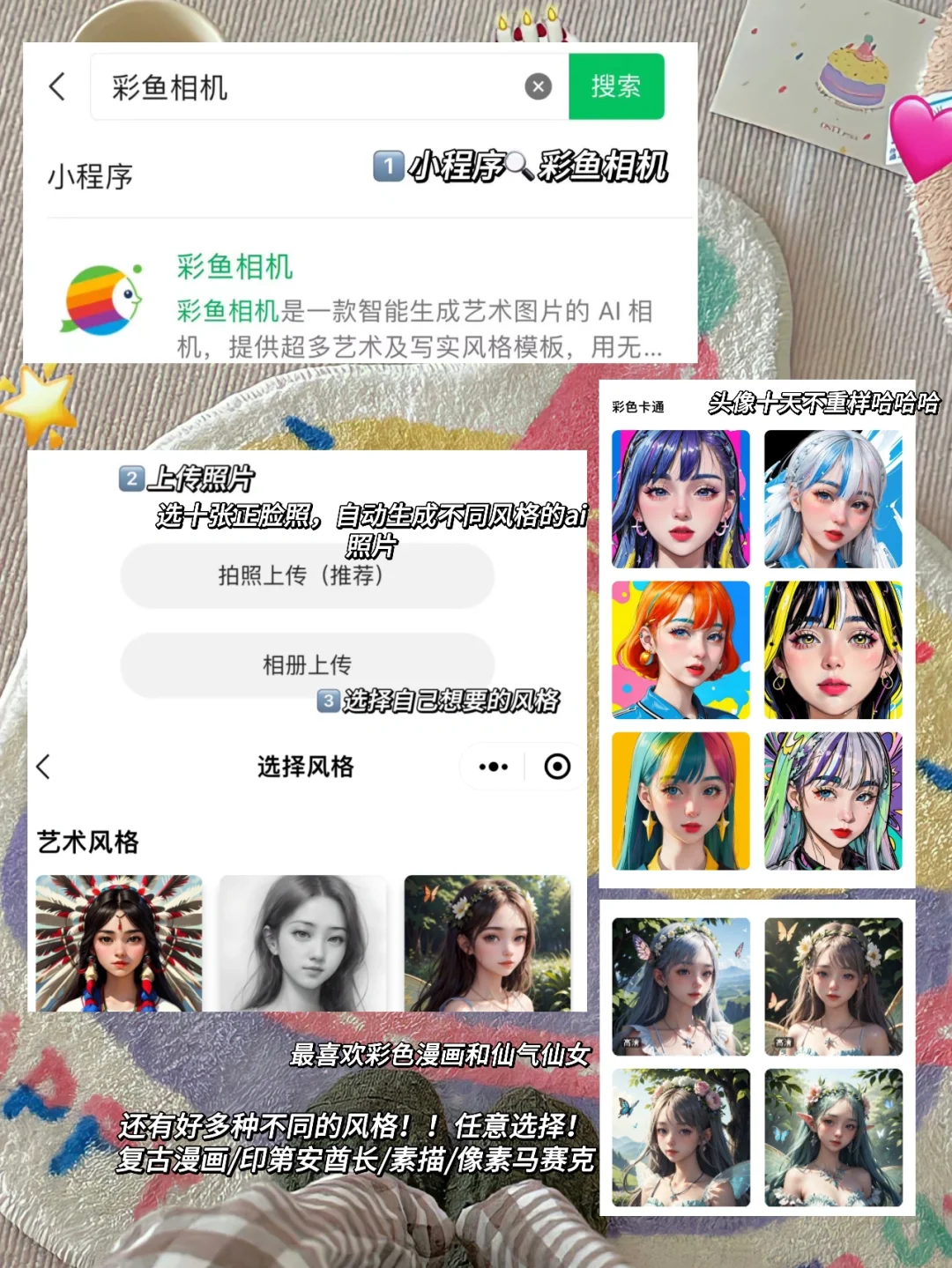 咩~我是小咩☺️ 𝐀𝐮𝐭𝐮𝐦𝐧 🍂 谁能想到自己还能变成动漫人物啊!😭ai你别太会👩🏼🦰咱就是说一个月头像不用愁了!天天不重样~ . 小程🟠序:彩鱼相机 主页-上传自己的正脸照- AI出不同风格的照片!(上传过一次之后/每一种风格都可以直接get!📸) . 小tips⭐️:同风格再生成一次 每次都会不一样!(我可以玩一下午hahahah🥹 . 咱就是说第一次用ai!也太好玩了吧🤩非常好奇自己变成动漫是什么样子的🫶🏻喜欢用动漫头像的老婆会懂!尊滴好可爱~再也不用去找头像惹🥹 .