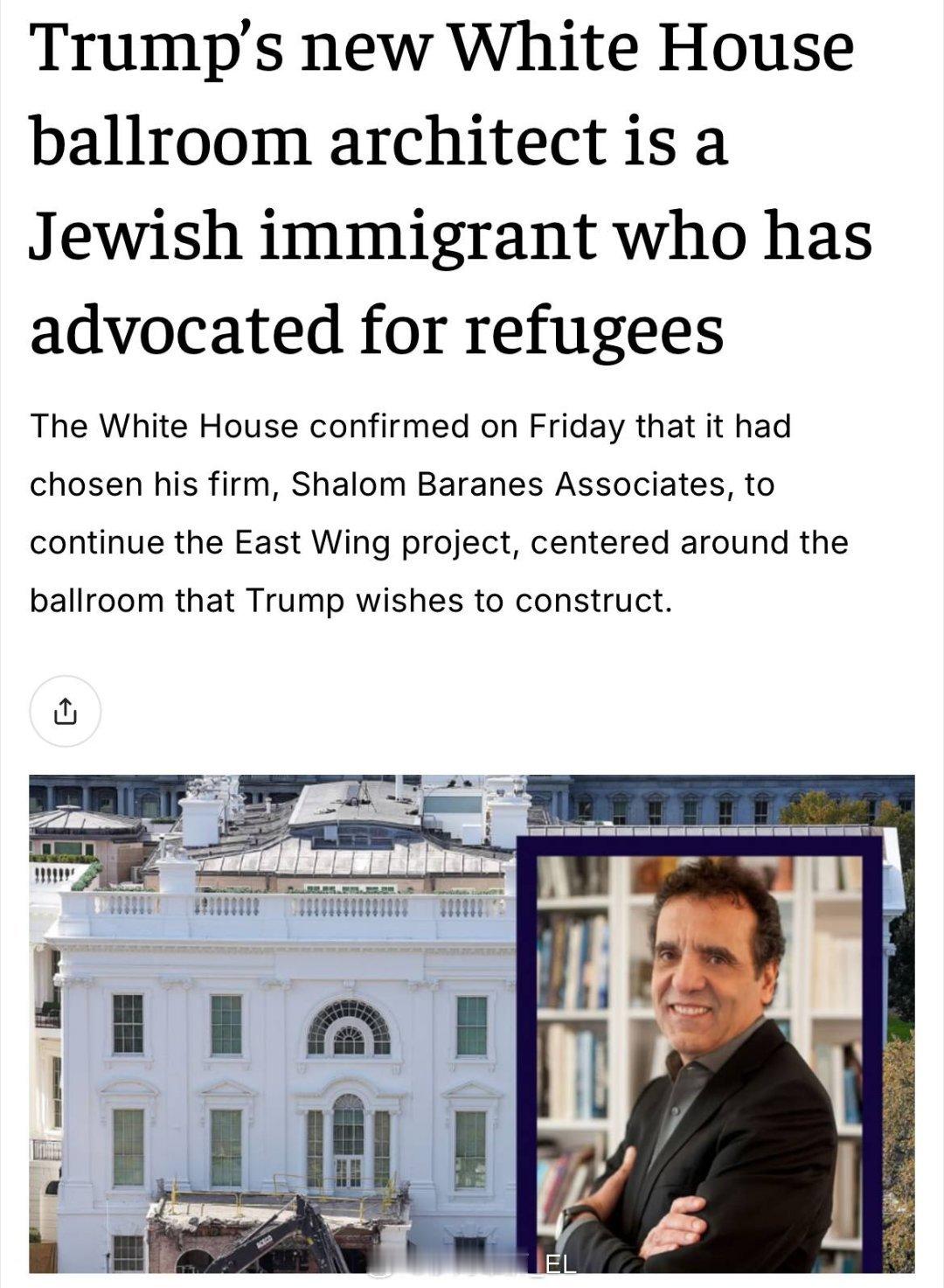 特朗普换掉了白宫新宴会厅的设计师,新设计师是一个支持移民的犹太人。