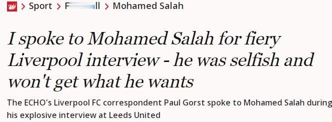戈斯特:在为利物浦出战的420场比赛里,萨拉赫几乎每次终场哨响后,都会礼貌却坚决地拒绝媒体采访。准确来说,这位埃及巨星有417次都是如此。在周六这场爆炸性采访之前,他只破例过三次——特意留出时间,接受围拢而来的记者们的提问。2018年,他兑现了自己的承诺。彼时他在加盟利物浦的首个赛季就轰入40球,达成这一里程碑后,他特意接受了采访。或许萨拉赫当初许下这个承诺时,是想设定一个高不可攀的门槛,以此避免日后频繁应对媒体,但最终他还是遵守了诺言。2019年,2-0击败热刺捧起欧冠冠军奖杯的那一刻,他同样接受了采访。马德里的赛场上,冠军奖牌挂在颈间,他的脸上洋溢着自豪的笑容。而13个月前,在大雨滂沱的圣玛丽球场外,萨拉赫向几位记者透露,由于未能就续约事宜与俱乐部达成一致,自己在利物浦的未来“离队的可能性远大于留队”。 ⚠️正因如此,当这位33岁的球星在周六晚间全程枯坐替补席、球队3-3战平利兹联后,告诉《回声报》记者,他会在赛后冲个澡再回来接受采访时,所有人都清楚,这位利史第三射手,是有满腹的话要说。接下来发生在埃兰路球场混合采访区的那一幕,着实非同寻常。即便萨拉赫向来擅长通过媒体传递信息、表明立场,但这场长达近七分半钟的采访里,他话语中流露的那份袒露心扉的坦率,依旧令人震惊。从直言自己被俱乐部“当成了替罪羊”,到承认与斯洛特的关系彻底破裂,再到暗示下周末主场对阵布莱顿的比赛,或许将是他的安菲尔德谢幕战——每一句话都堪称石破天惊。萨拉赫的倾诉,像极了一头受伤的野兽,连续被弃用的处境,早已让他的自尊心荡然无存。萨拉赫此番言论,绝非简单的“煽风点火”,而是直接将利物浦这艘本就飘摇的船,朝着巨大的冰山撞去。而当下的利物浦本就处在多事之秋,人们不禁要问:他为何偏偏选择在这个时候发难?对于现场的记者们而言,能听到这样一位顶级球星如此直言不讳地谈论球队的困局,简直是求之不得的绝佳素材。接受采访时,语气里没有愤怒,也看不出任何口不择言的冲动,更不会让人觉得,在从约克郡返回默西塞德郡的大巴旅途上,这位为红军攻入250球的传奇射手会满心懊悔。不,这是一场蓄谋已久的“掀桌子”之举。但对于球迷和队友们来说,这场石破天惊的采访只会徒增更多麻烦。这位33岁的球星,无疑是在本赛季这堆已然熊熊燃烧的“垃圾之火”上,又浇了一大桶汽油。萨拉赫对斯洛特以及其他匿名俱乐部管理层的猛烈抨击,只会让这支英超卫冕冠军的处境雪上加霜。周一午后,全队将飞赴米兰,备战周二晚间与上赛季欧冠亚军国际米兰的关键一战。深陷舆论漩涡的斯洛特,显然不需要萨拉赫此番言论所引发的这场闹剧,来扰乱军心。从这个角度看,萨拉赫的做法未免有些自私。要知道,他本赛季的表现,相较于上赛季助球队夺冠时的超凡水准,早已下滑了好几个档次。13个月前他在南安普顿接受采访时,外界就曾质疑他选在了错误的时机——彼时红军正稳居联赛榜首,一路领跑争冠。有人认为,他的言论可能会在赛季关键阶段破坏球队的夺冠势头,尽管他本人并不认同这一说法。但在那场3-2击败南安普顿的比赛中,他梅开二度,用进球为自己的续约谈判增添了筹码。最终,那晚的公开表态成了一步妙棋。今年4月,他如愿签下了利物浦队史最大的一份合同,并以英超冠军和金靴得主的身份,结束了那个辉煌的赛季。然而这一次,他此番出格之举,实在没什么正当理由。和许多队友一样,萨拉赫本赛季的表现确实不尽如人意。尽管有人认为,将队内头号得分手摁在替补席,是一种毫无必要的“激进”操作,但不可否认的是,在他连续三场担任替补的比赛里,利物浦保持不败。在连续53次英超首发之后,突然被连坐三场替补,他感到愤愤不平,这一点可以理解。但在顶级足坛,状态起伏本就是常态。更何况,斯洛特眼下必须未雨绸缪,为萨拉赫参加非洲杯期间的阵容提前做准备。因此,我们完全没有理由认定,这位主教练此番举动是在“意气用事、自毁长城”。萨拉赫坚称自己“不会凌驾于俱乐部之上”,这话没错。但他公开坦言与斯洛特关系破裂的做法,更像是一记直球,将难题抛给了芬威体育集团的老板们,甚至是利物浦的球迷们——迫使他们必须就此选边站队。33岁的萨拉赫,手握一份利物浦队史最大的合同,合约还剩大约18个月。这一次,他得到的答案,恐怕未必如他所愿。事情怎么就会发展到这般田地呢?