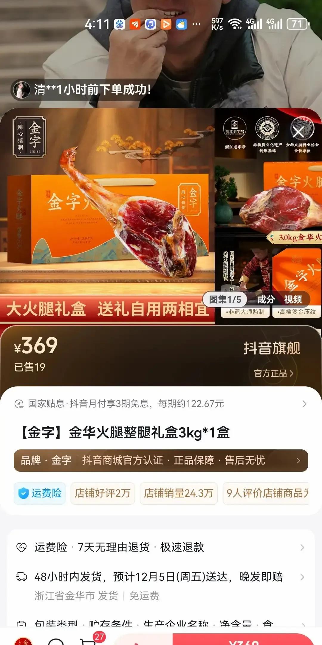 俞老师昨晚开卖金华火腿,直播间里自己先下单9份,想带个头,结果屏幕那头静悄悄。