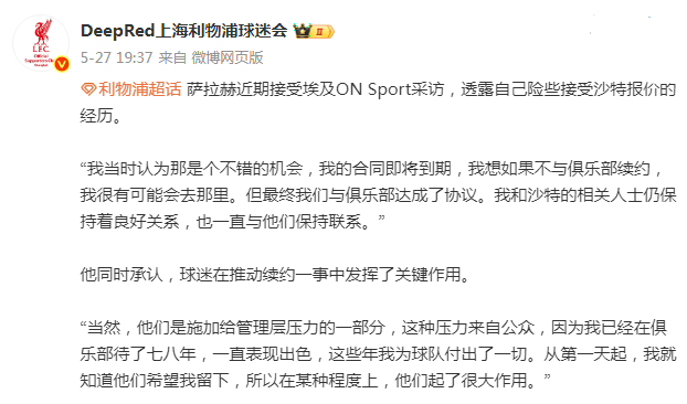 电讯报:一位沙特职业联赛高层透露,萨拉赫 “毫无疑问” 将会登陆沙特联赛。据悉,若萨拉赫离开利物浦,利雅得新月和吉达联合将是最有可能签下他的俱乐部。消息人士此前曾表示,萨拉赫更可能在明年夏天转会,目前尚不确定能否在一月转会窗达成协议。但他发表了一系列爆炸性言论,这一局面或许已发生改变。沙特职业联赛方面如今将探讨两方面事宜:一是能否在下个月达成交易,二是萨拉赫是真心想离队,还是仅为宣泄不满。沙特联赛此前并未预料到,萨拉赫会如此公开地表达对利物浦的不满 。有消息人士将此事比作 2022 年 11 月克里斯蒂亚诺罗纳尔多接受皮尔斯摩根电视采访的事件。当时 C 罗声称自己 “不尊重” 主帅埃里克滕哈赫,次月便官宣以自由球员身份离开曼联,加盟利雅得胜利。鉴于萨拉赫去年夏天刚与利物浦续约(此前他曾因合同即将到期,与沙特联赛洽谈过自由转会事宜),利物浦大概率不会在未收取高额转会费的情况下放行。2023 年 9 月,吉达联合曾为这位 33 岁球星开出 1.5 亿英镑的报价,但遭到利物浦拒绝。不过萨拉赫与沙特联赛、尤其是这家总部位于吉达的俱乐部,始终保持着良好关系。吉达联合是当前沙特联赛冠军,由本泽马担任队长,现任主帅为塞尔吉奥孔塞桑 —— 正是他们在上赛季终结了利雅得新月的统治。而利雅得新月则是另一家被认为极有可能签下萨拉赫的俱乐部,队中拥有前队友努涅斯,主帅是前国际米兰教练西蒙尼因扎吉。“我们完全确信,萨拉赫会来沙特,这一点毋庸置疑。只是不确定会是明年一月、下一个转会窗口,还是明年夏天。” 一位联赛高层表示。