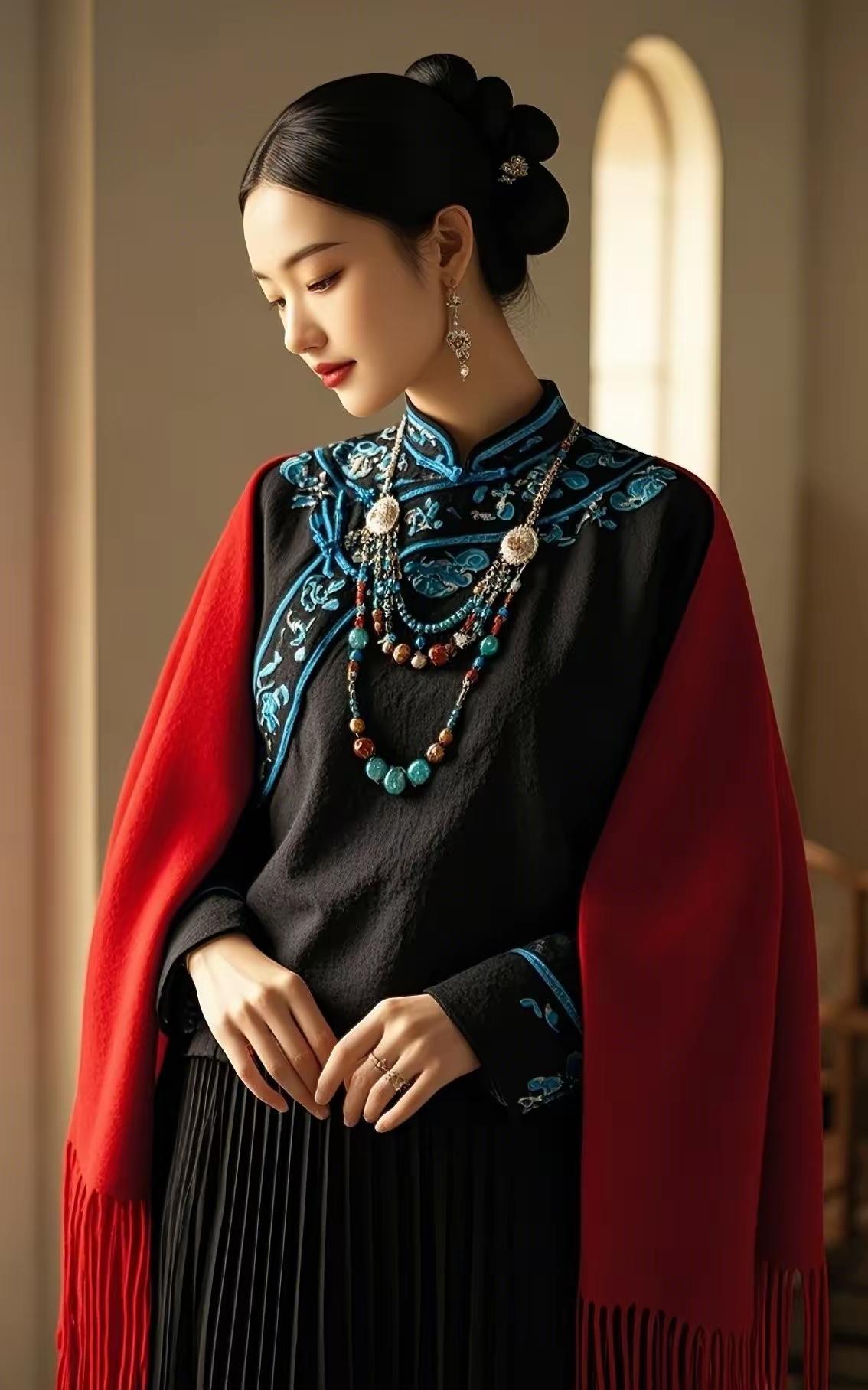 清江引·长街旗袍美女 蓝袍白花姿影曳, 步韵诗心惹。 长街细雨蒙, 黛瓦连檐惹。 古今情牵千念惹。
