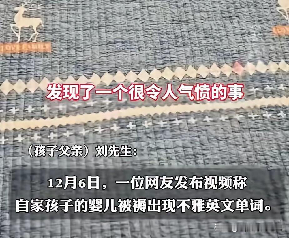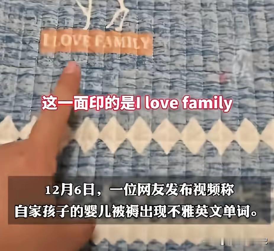 奶都没喝完的宝宝,天天盖的居然是一句英文脏话。刚拆封的婴儿被,印一排“F-word”大写,当爹的直接原地裂开——这是赠品,没牌子、没厂家,只剩四个韩文水洗标,活脱脱找不到人的“三无盲盒”。 网友神吐槽:现在给娃买带英文的东西,得先掏出手机逐词翻译。 这哪是“图案”,分明是把成年人的低级内容,缝进了孩子每晚的梦里。最后让娃的床成了“脏话展板”。 做童品却不懂童语,整条流水线都在打瞌睡:机器哐当、胶辊翻转、袋子封口,谁也没真把眼睛在内容上看三秒,不雅单词直接缩水成1.2米床品。 一个冷知识:国外童品法把“任何可能引起家长不适”都算作不当内容,所以我们真缺的不是标准,是执行。 所以,我们现在能做的只能像那位父亲一样,把伤口撕开,提醒后来者:凡是递到孩子手里的物件,无论崭新还是礼盒精装,先撕开封膜、泡进清水、里外交错地摸一遍。 这不是小题大做,希望这条让人胸口发闷的消息,能把更多目光拽进这条被忽视的暗缝。童年的疆域,不该被任何“隐形垃圾”悄悄侵占。 各位宝爸宝妈,你们会给娃用“来路不明”的赠品吗?