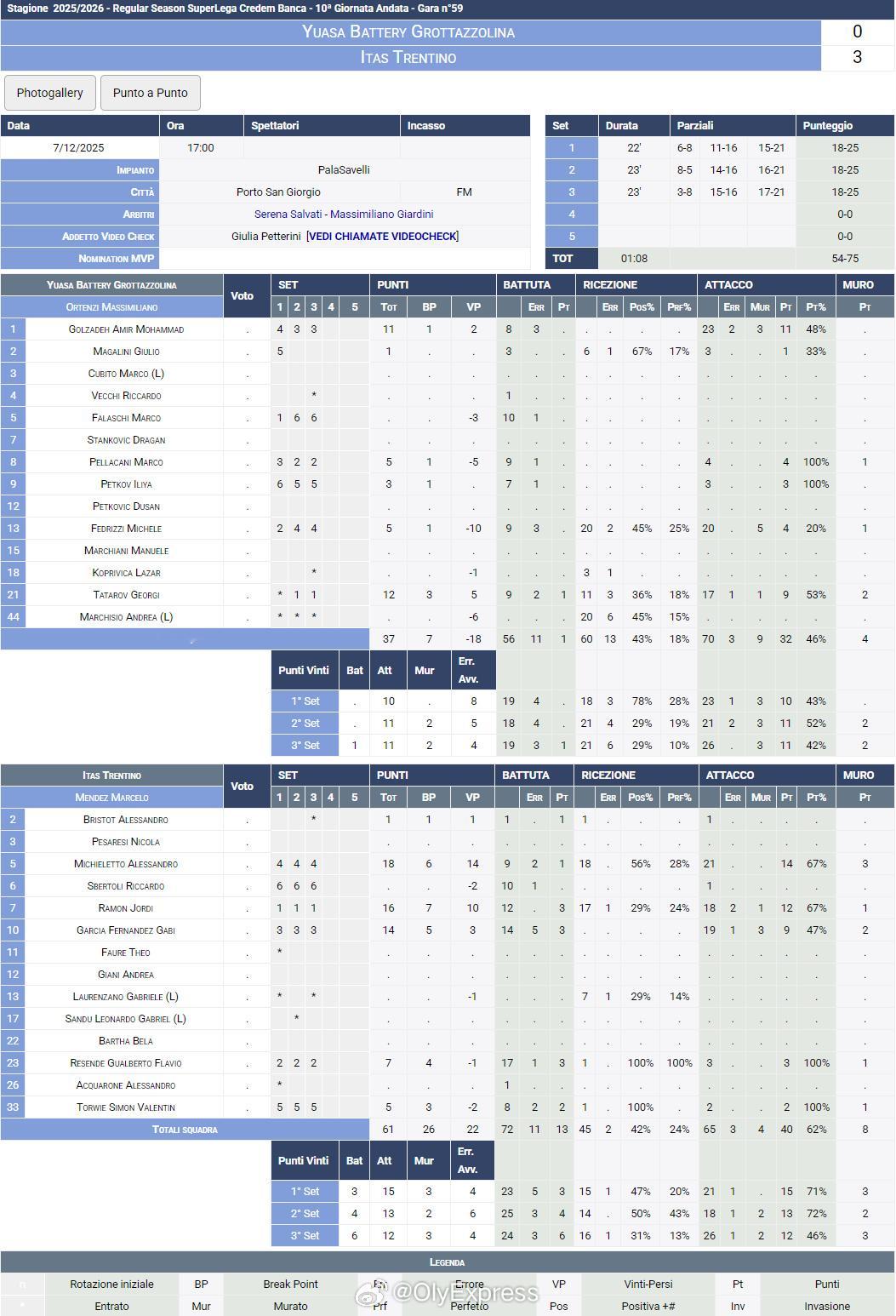 【意超男排赛果】国际排坛战报速递 12月7日,意超男排第十轮结束四场比赛,赛果如下(主队在前):米兰0-3(10-25/19-25/19-25)佩鲁贾希斯特纳1-3(25-21/23-25/22-25/18-25)皮亚琴察库内奥0-3(22-25/20-25/20-25)维罗纳格罗塔佐利纳0-3(18-25/18-25/18-25)特伦蒂诺