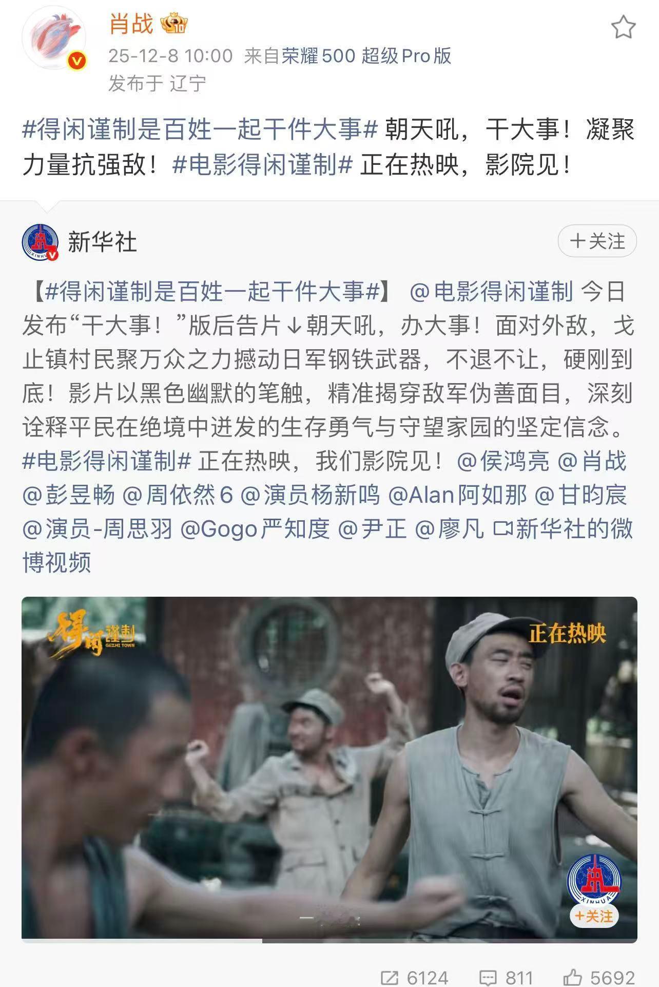 肖战朝天吼干大事肖战得闲谨制朝天吼干大事 肖战:朝天吼,干大事!凝聚力量抗强敌!一起来电影院看《得闲谨制》莫得闲