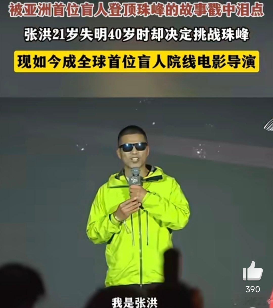 亚洲首位盲人登顶珠峰的故事太燃了珠峰登顶者成全球首位盲人电影导演张洪太燃了!21岁失明却逆袭人生,40岁零基础苦练登顶珠峰。如今又成全球首位盲人导演,他不断突破,用行动诠释着精彩与价值永在未来!